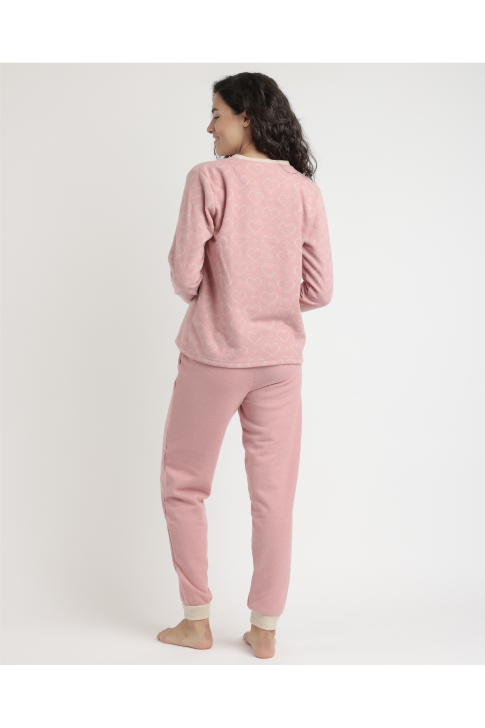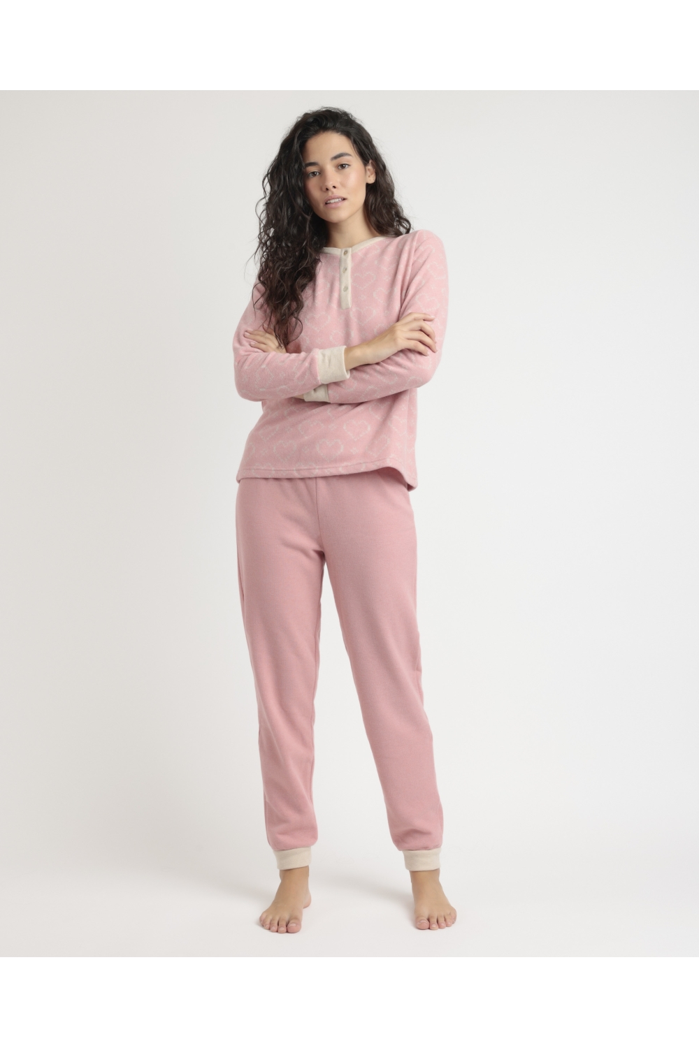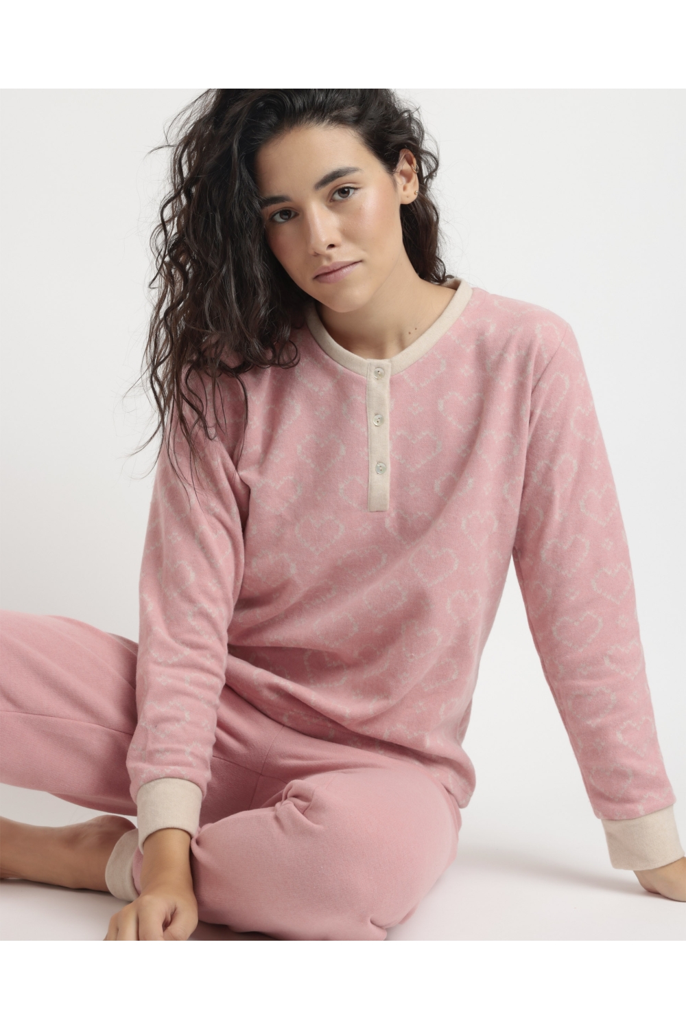 PEANUTS Pijama Manga Larga Felpa Snoopy&Friends para Mujer MOSTAZA