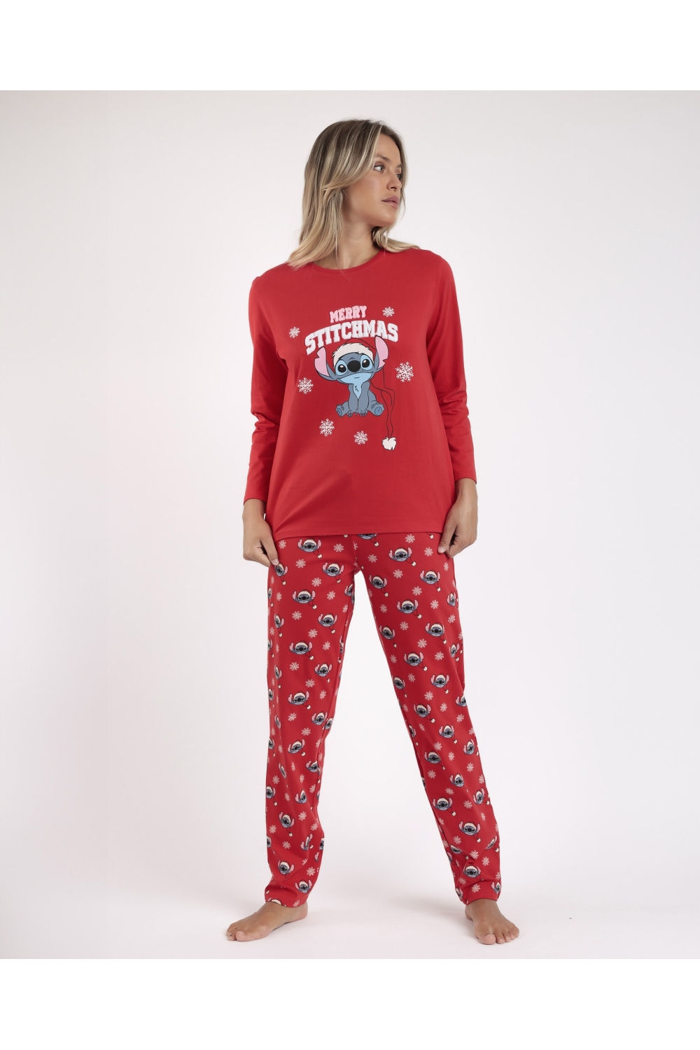 DISNEY Calcetín Antideslizante Stitchmas para Mujer, (Caja de 12 packs) ROJO
