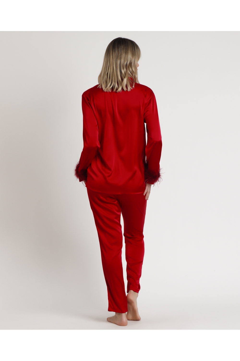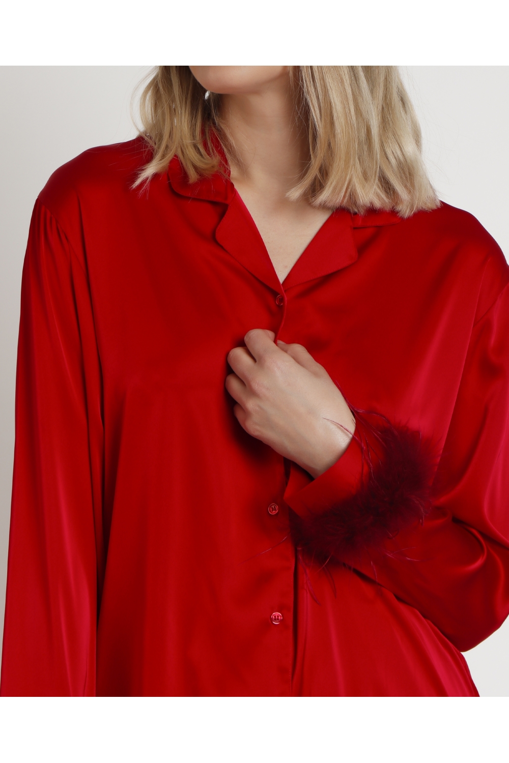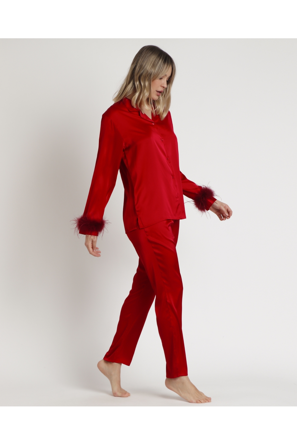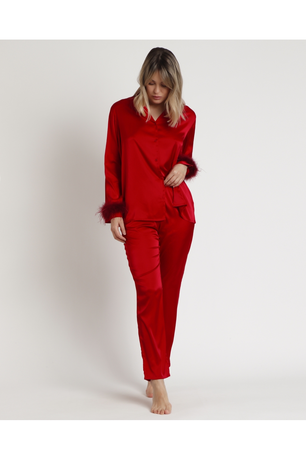 ADMAS LUXURY Pijama Abierto Manga Larga Plumas Marabu Luxe para Mujer BLANCO