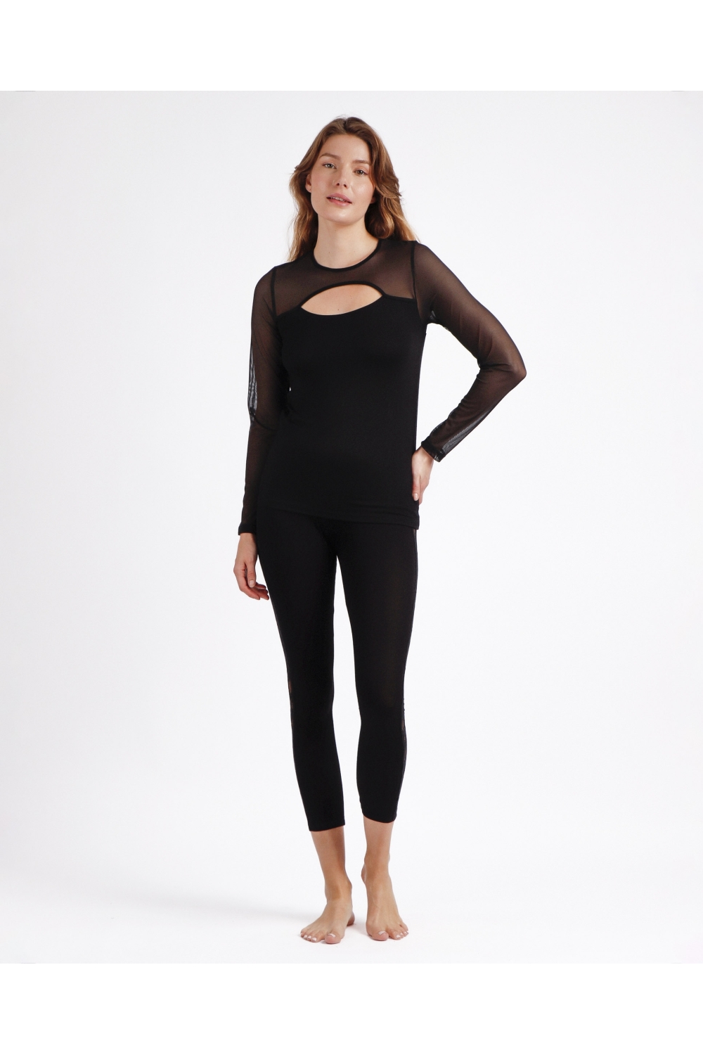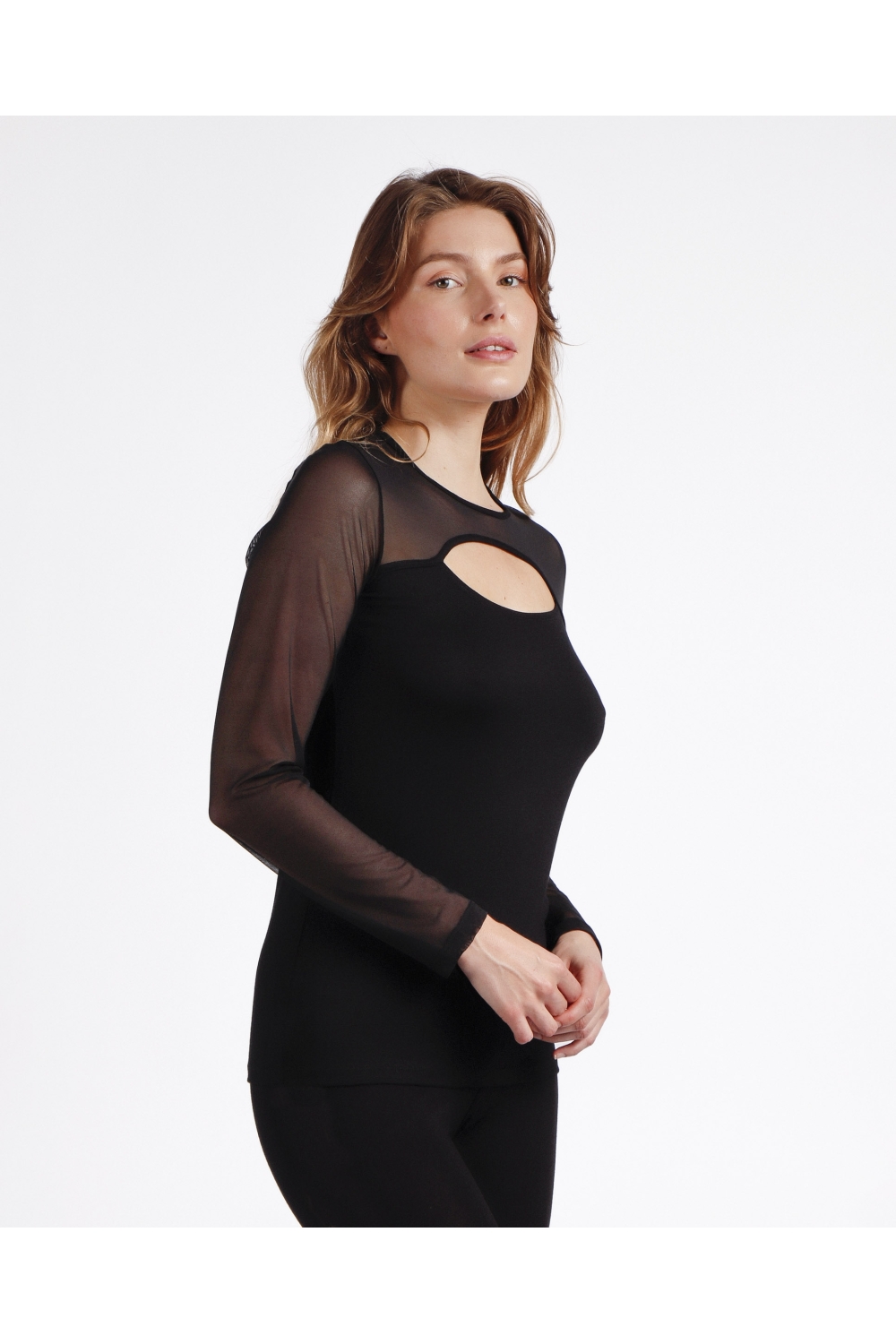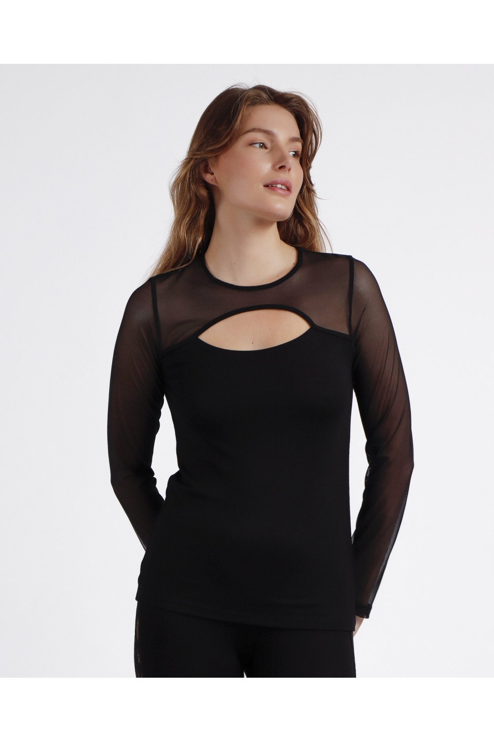 ADMAS Camiseta Manga Larga Tul Abertura para Mujer