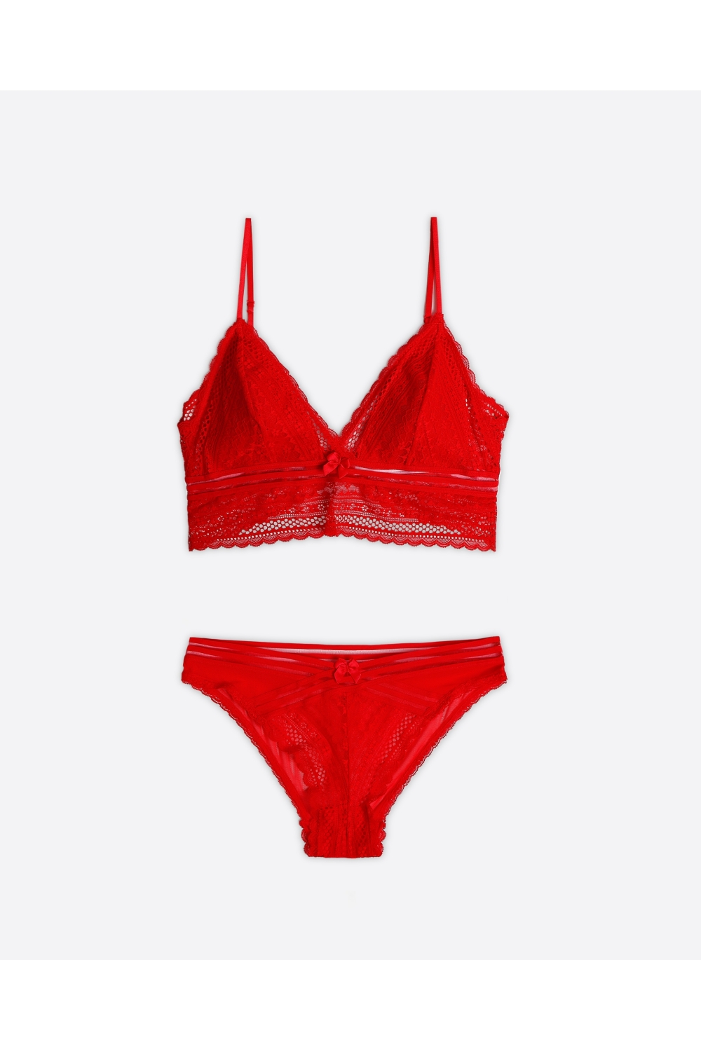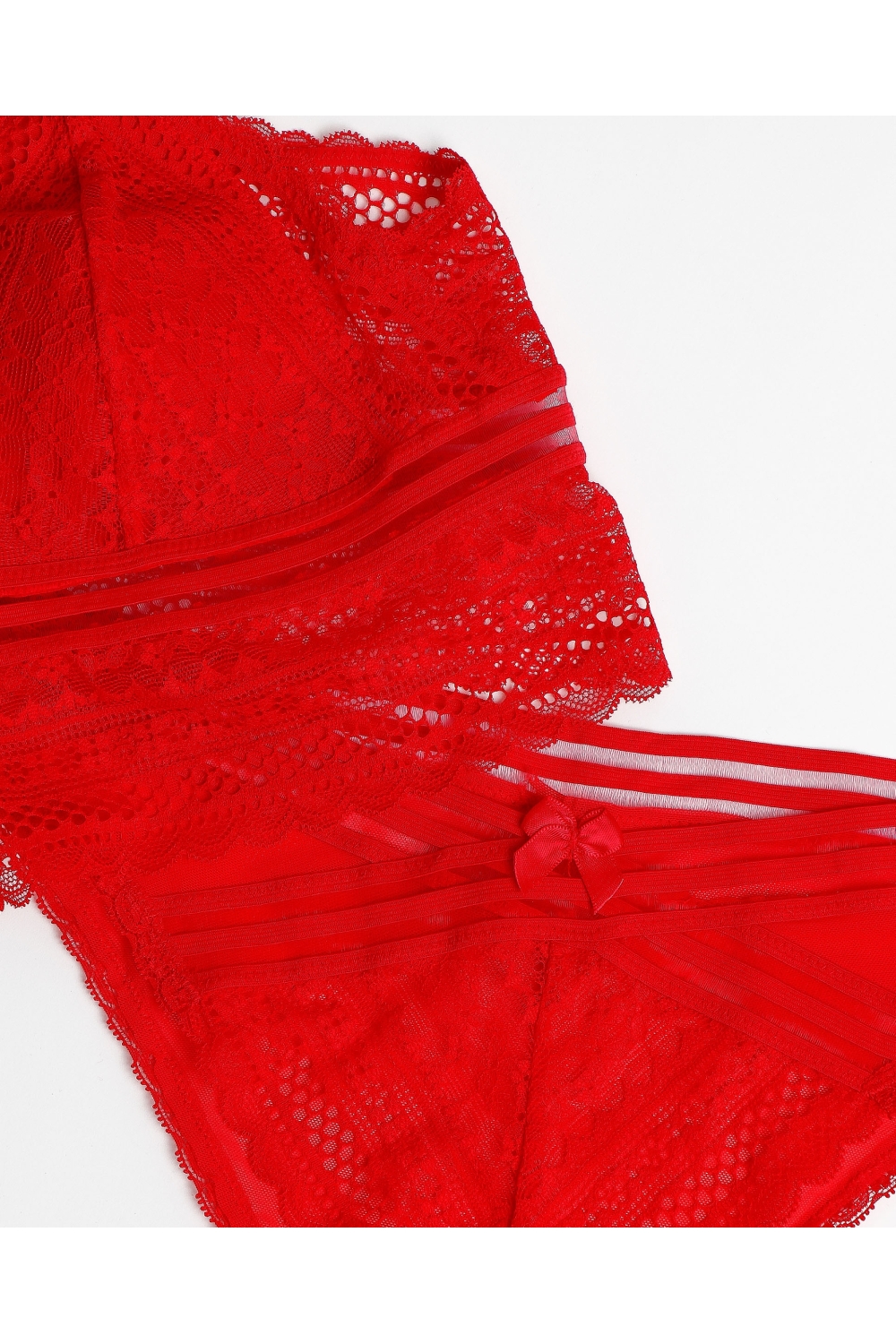 ADMAS Conjunto Tentación y Tanga Sexy Night para Mujer ROJO RUBÍ