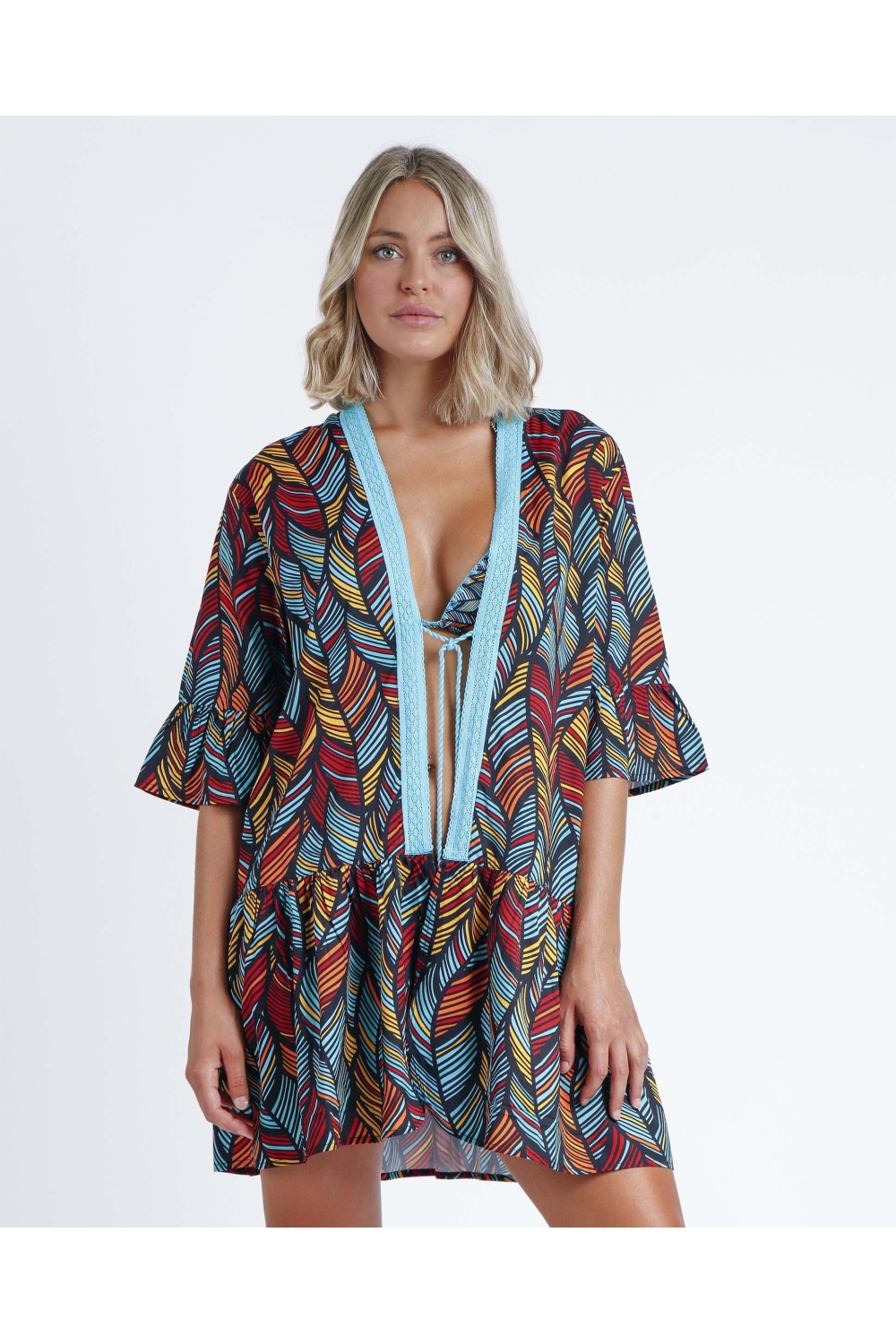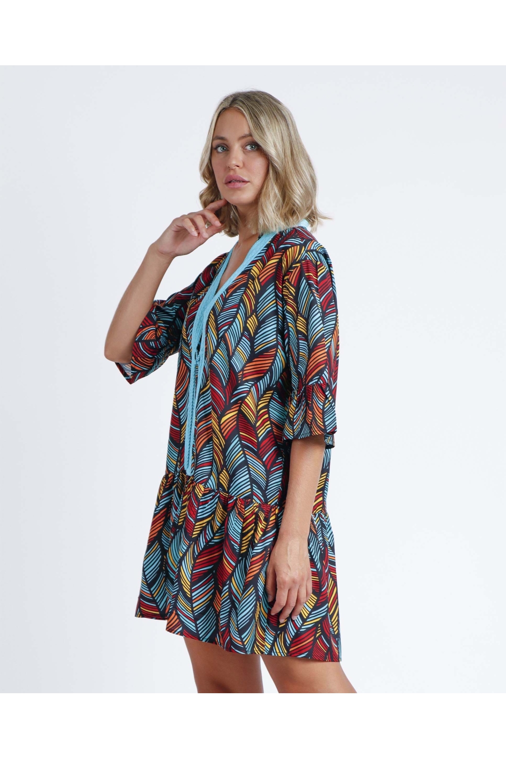 ADMAS Vestido Ethnic Feathers para Mujer TURQUESA