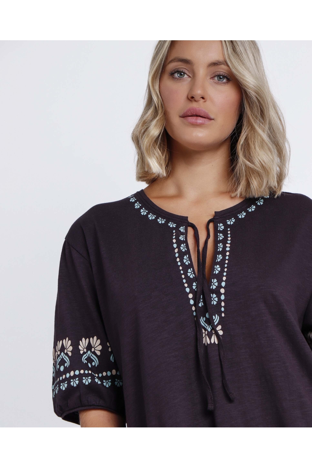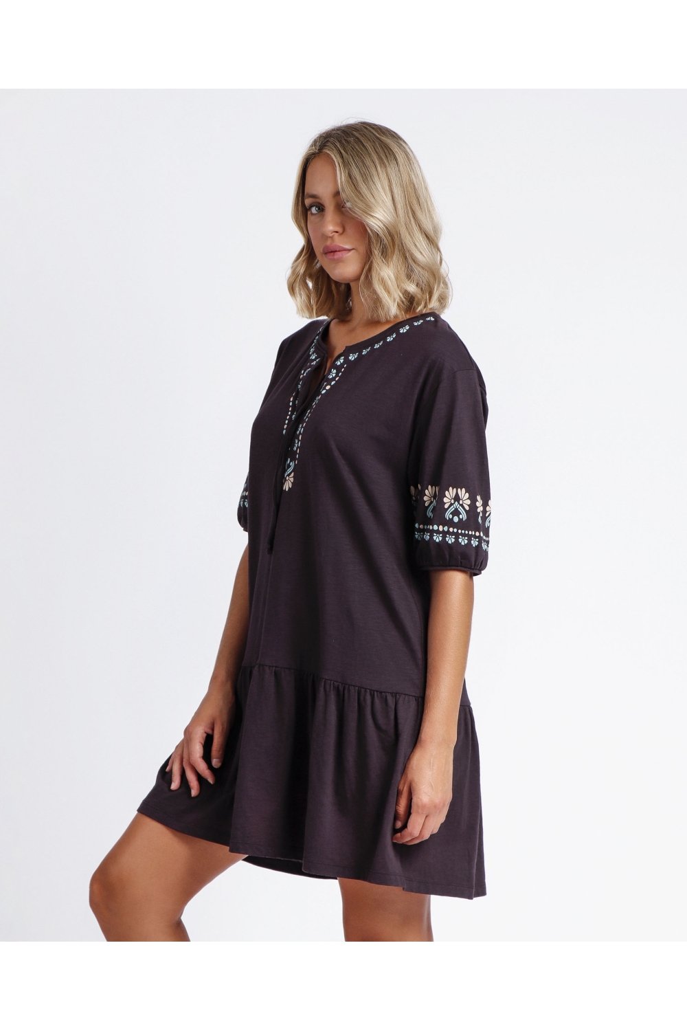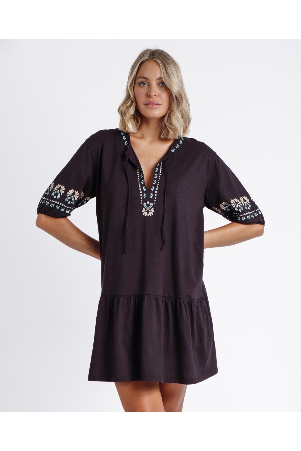 * Vestido para mujer de punto viscosa con estampado étnico, lo que le da un aire artesano a la prenda.