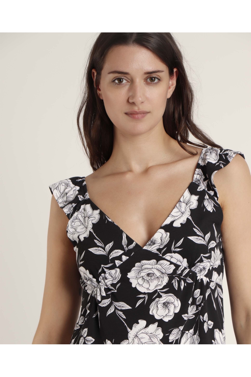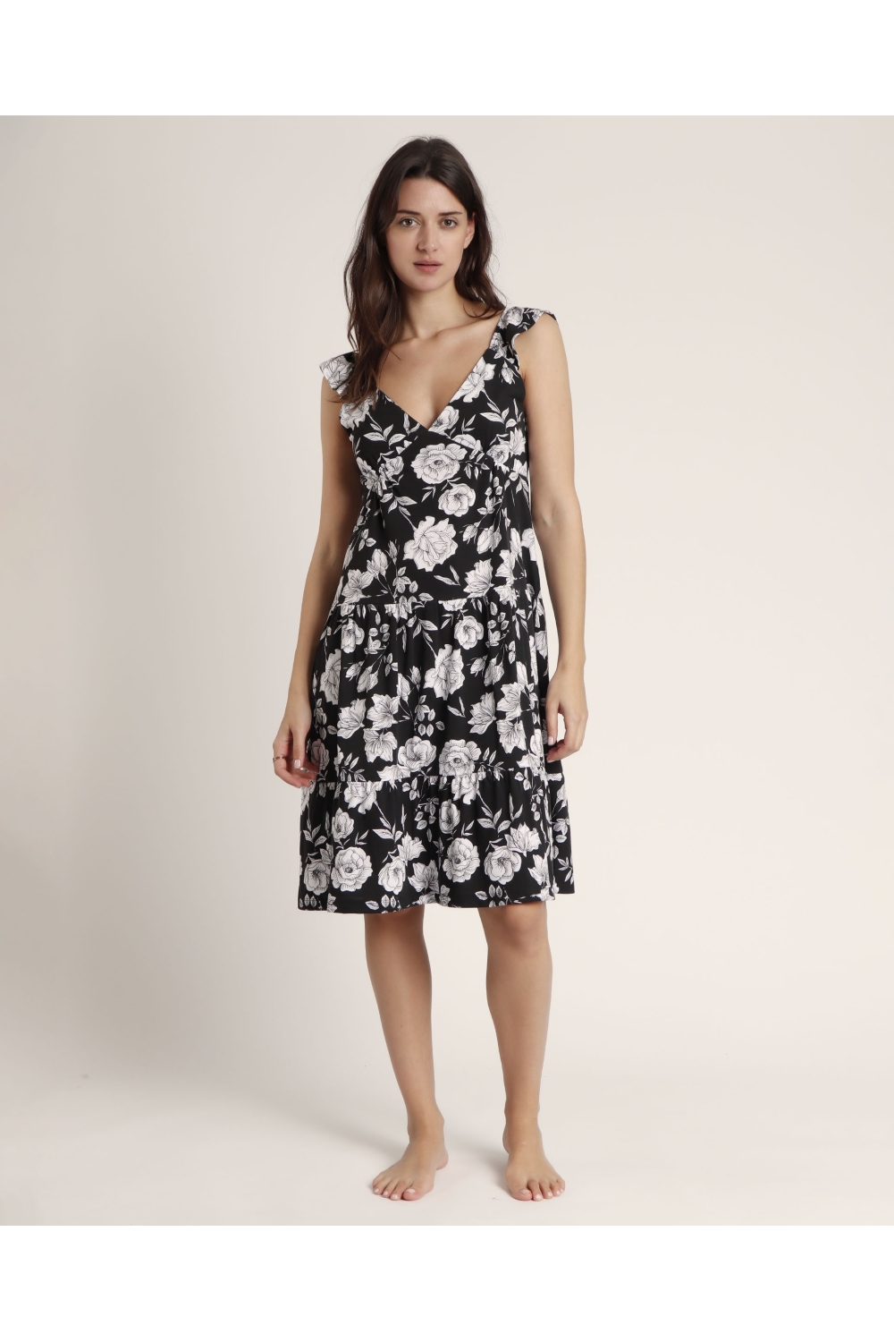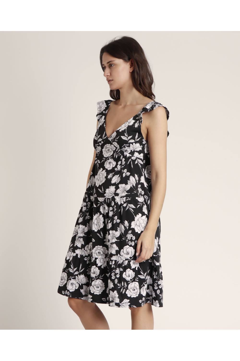 ADMAS Vestido Sin Mangas Beach Flowers para Mujer NEGRO
