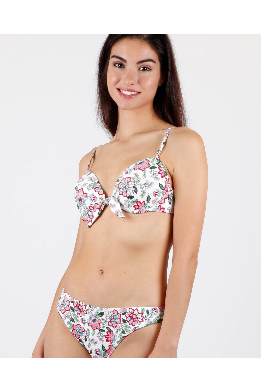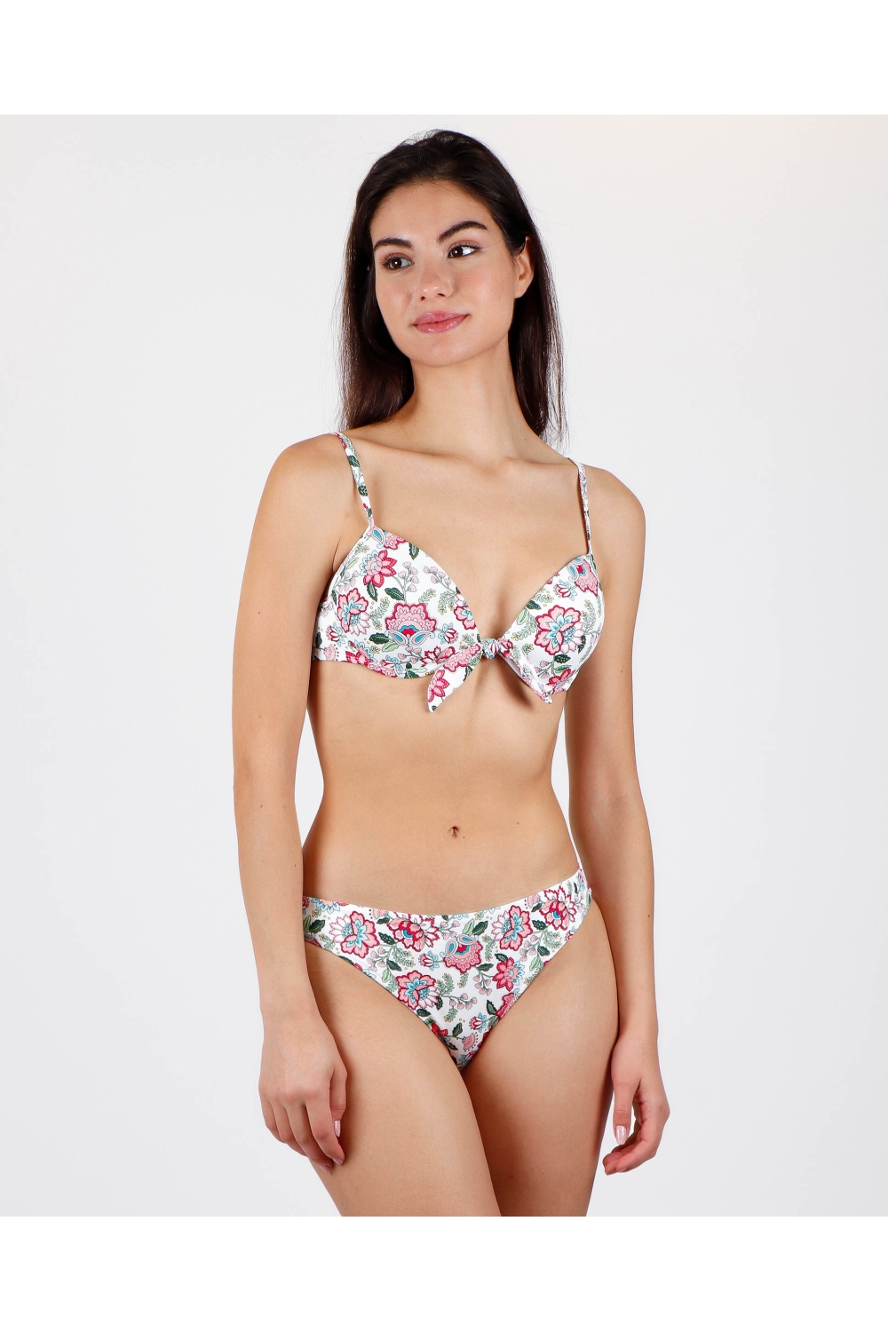 * Bikini push up, de tejido de baño elástico, compuesto por dos piezas (top atado y braga), de estampado muy veraniego