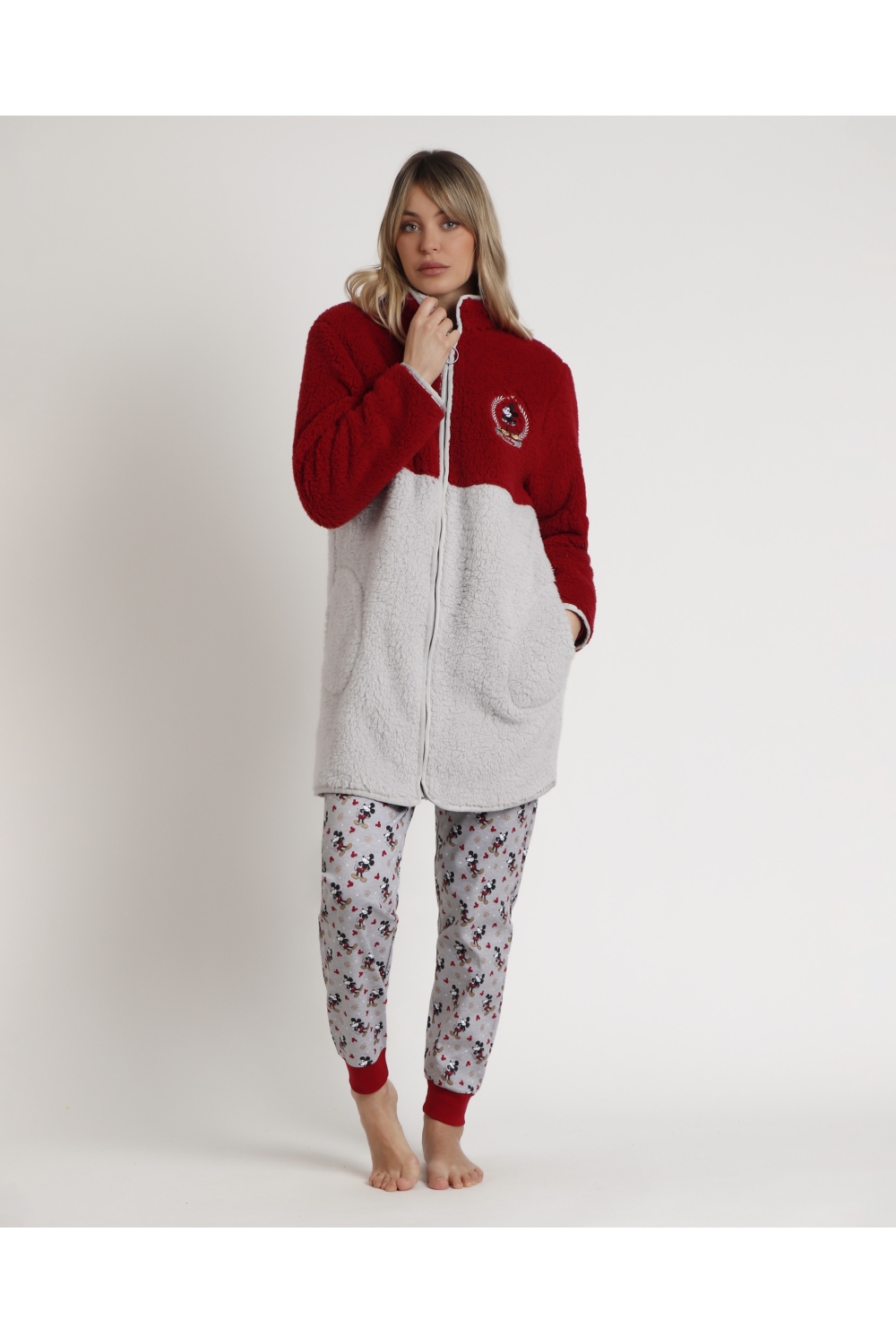 DISNEY Bata Manga Larga Calentita King Mickey para Mujer BURDEOS