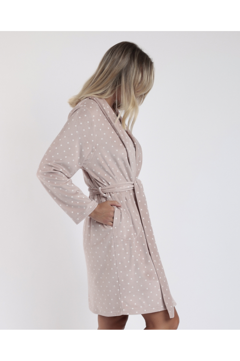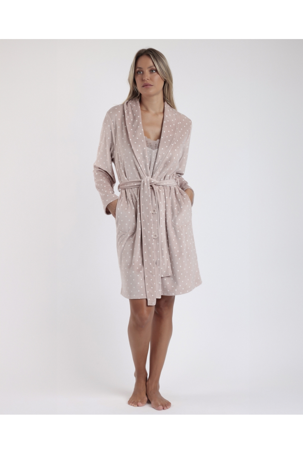 ADMAS CLASSIC Bata Manga Larga Dots Lace para Mujer PIEDRA