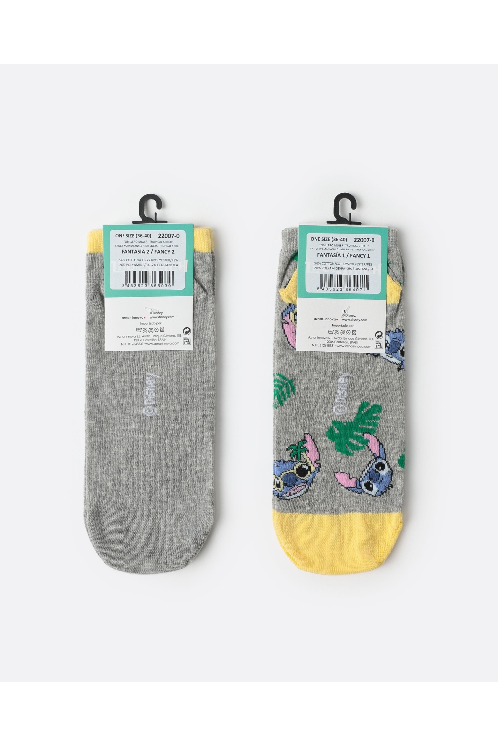 DISNEY Calcetín Tobillero Tropical Stitch para Mujer, (Caja de 6 pares) SURTIDO