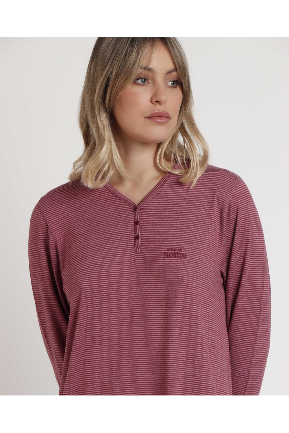 STAY AT HOME Pijama Manga Larga Soft Stripes para Mujer FRAMBUESA