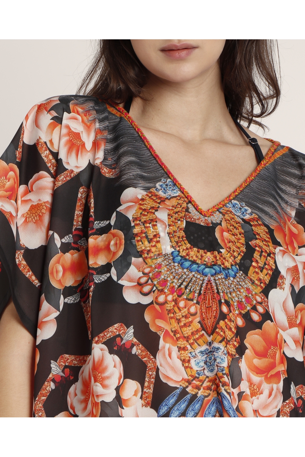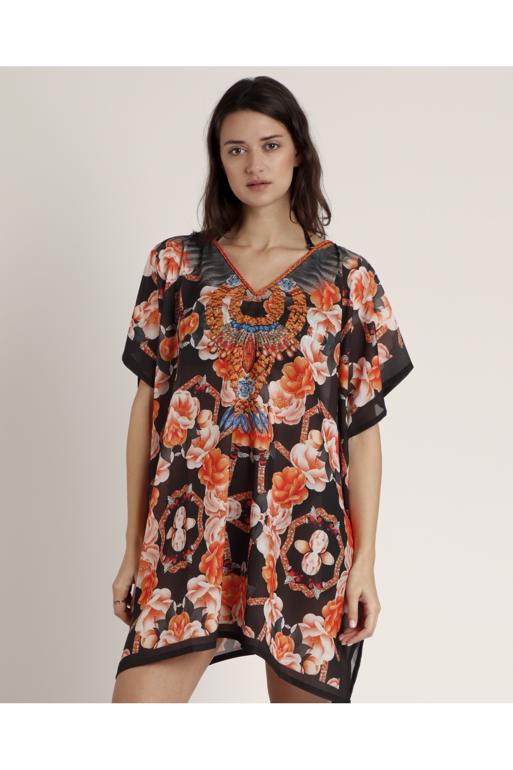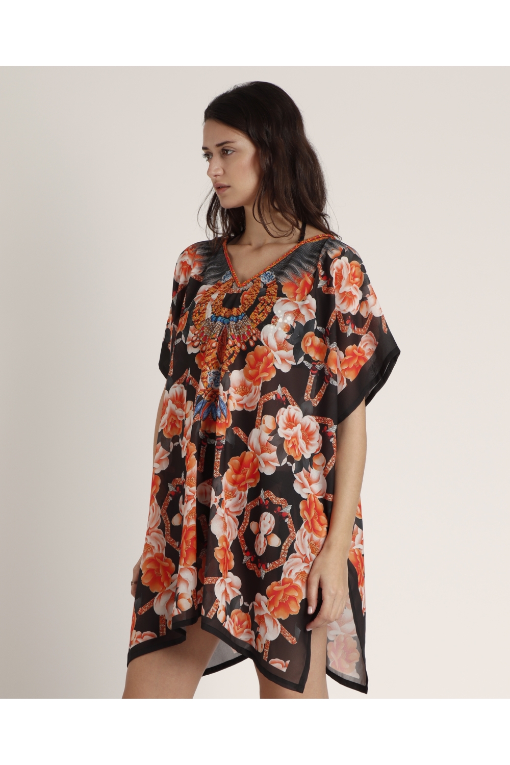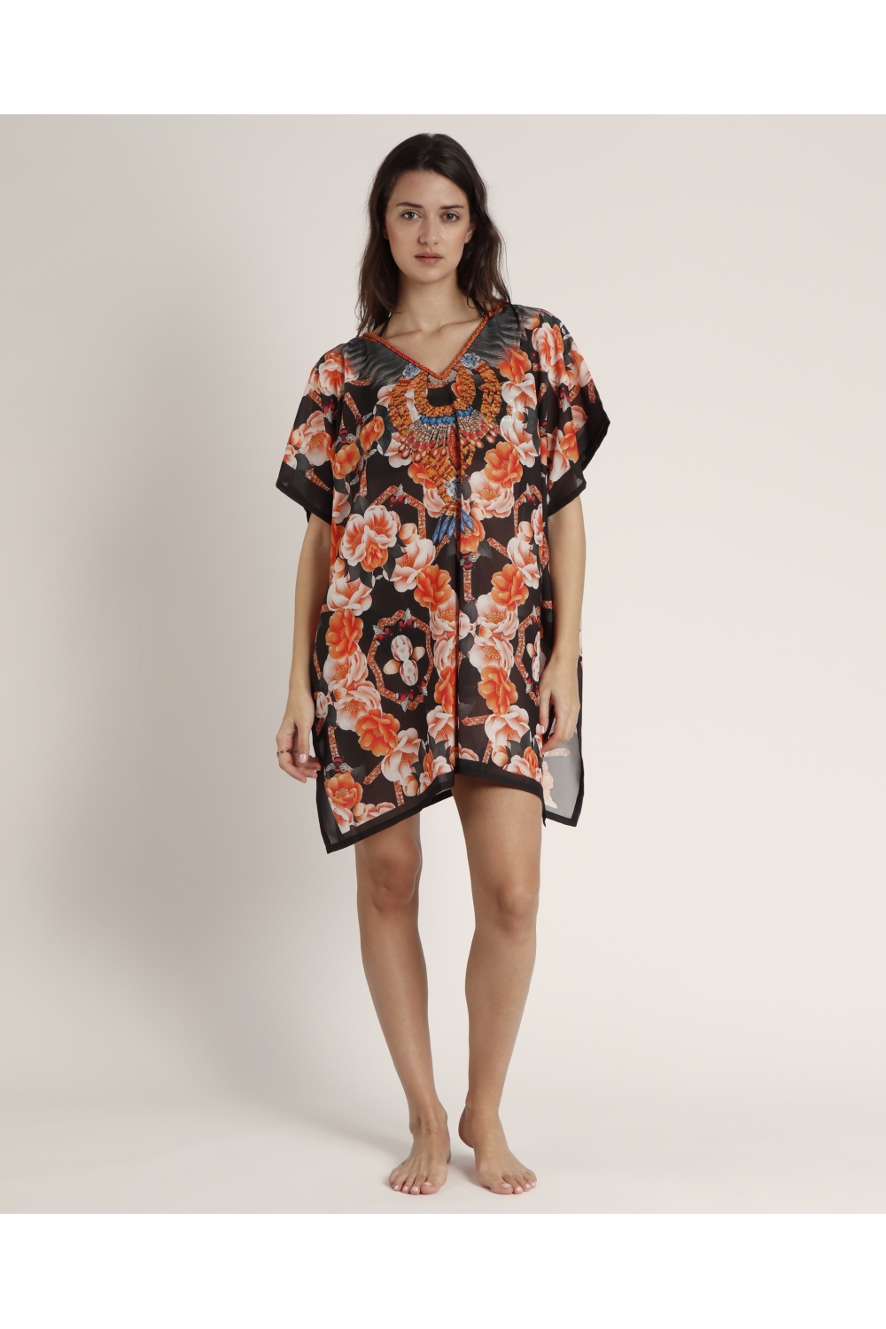 ADMAS Vestido Kaftán Flores Naranjas para Mujer