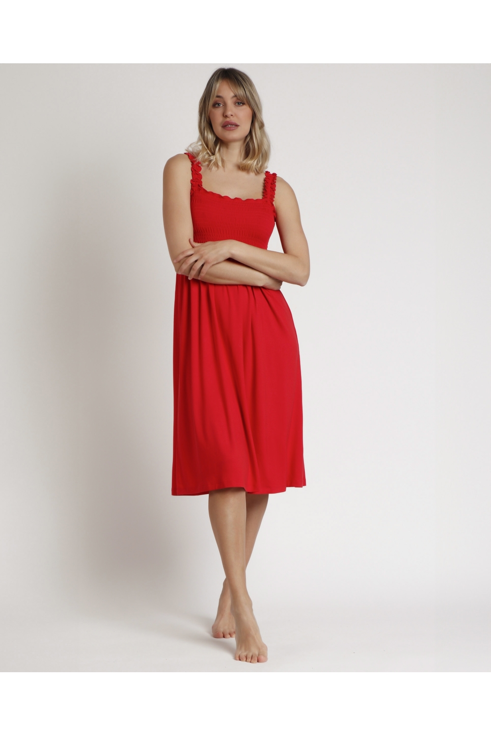 * Vestido de tirantes para mujer de punto liso, de escote cuadrado, en dos combinaciones de color: azul y rojo.