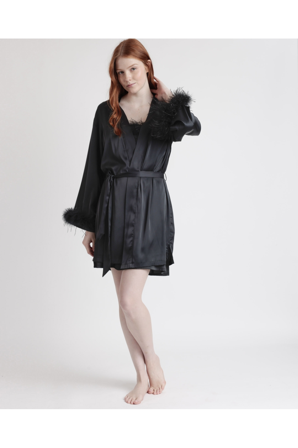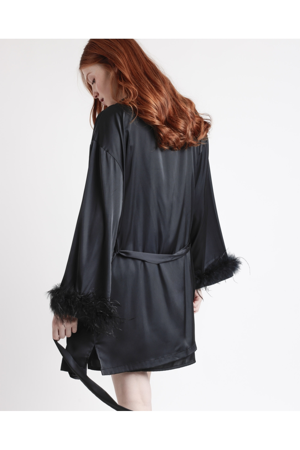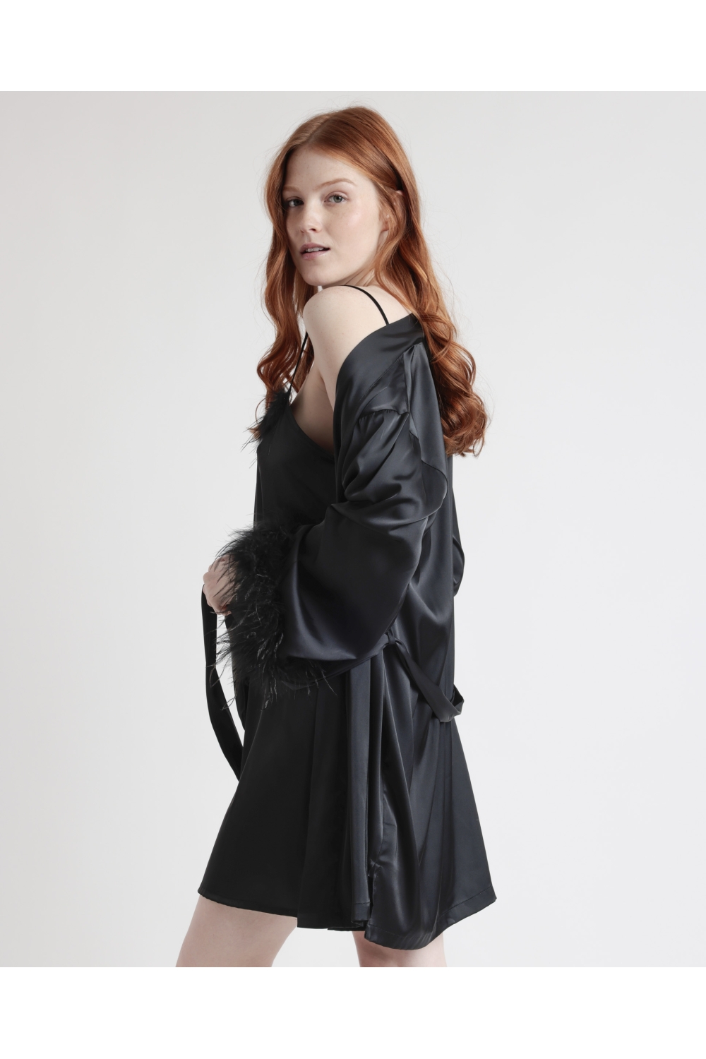 * Bata de tela satén, de manga larga, en dos combinaciones de color: negro y rojo.