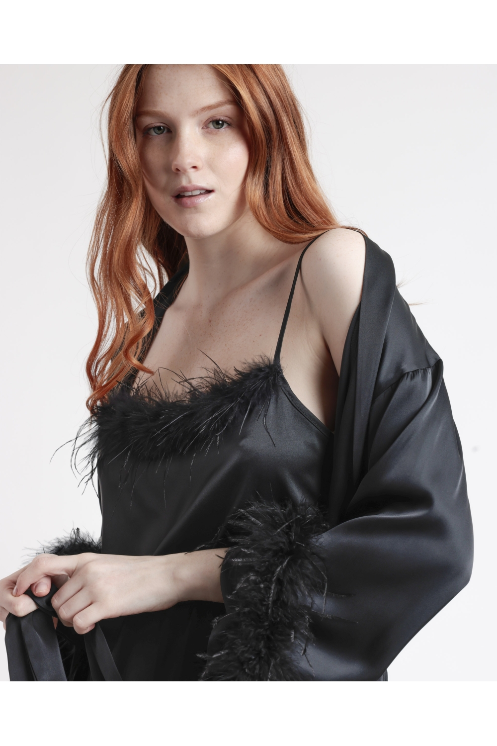 ADMAS CLASSIC Bata Manga Larga Marabu Luxe Christmas para Mujer NEGRO