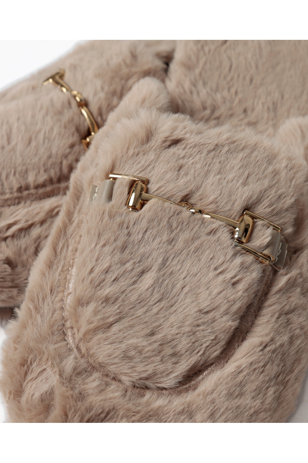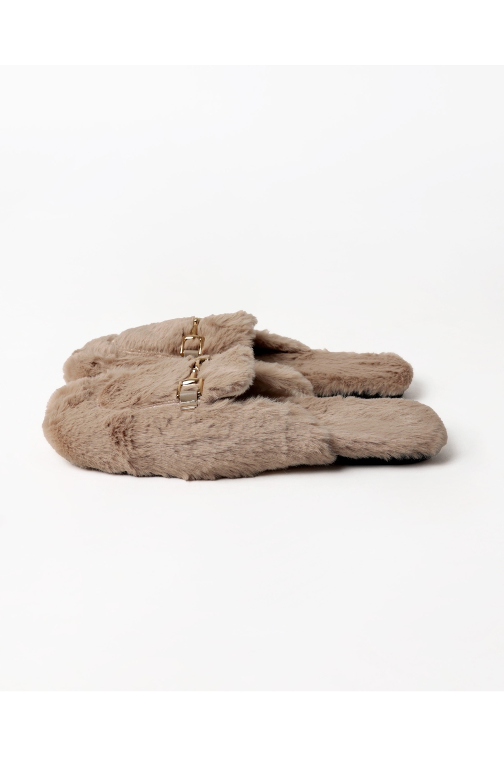 * Zapatillas de estar por casa, estilo mocasín, de tejido cálido de pelo, disponibles en color beige.