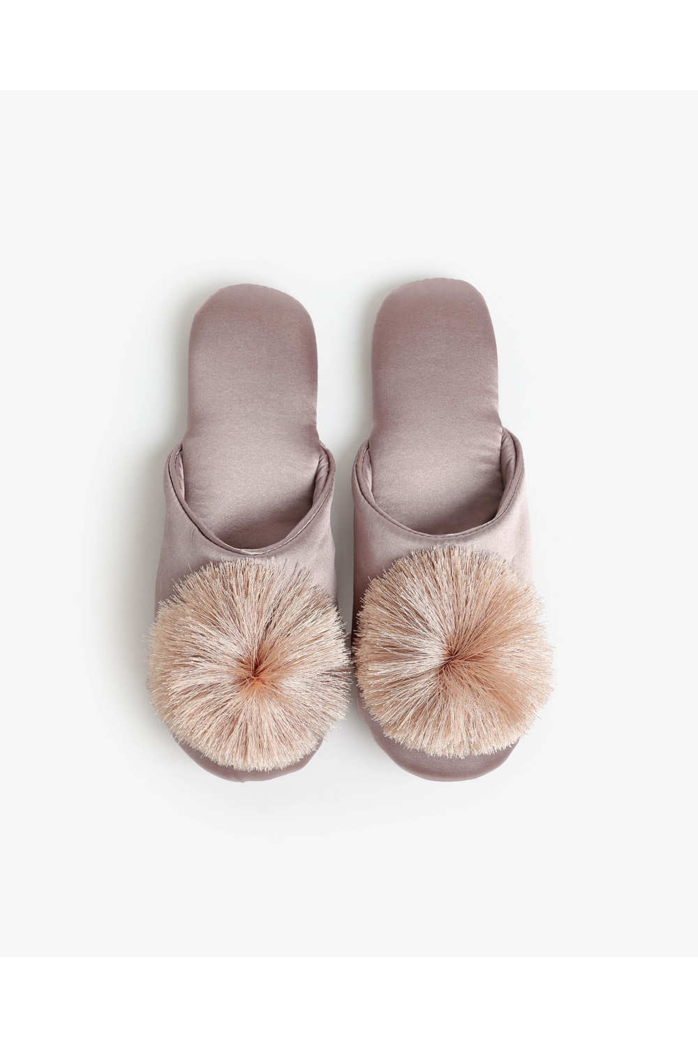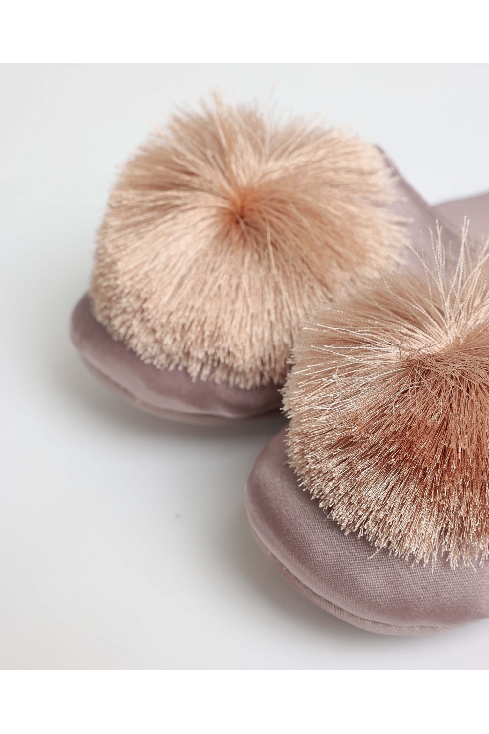 * Elegantes zapatillas de novia de satén, adornadas con un delicado pompón a tono, disponible en tres combinaciones de color: piedra, blanco y verde agua.