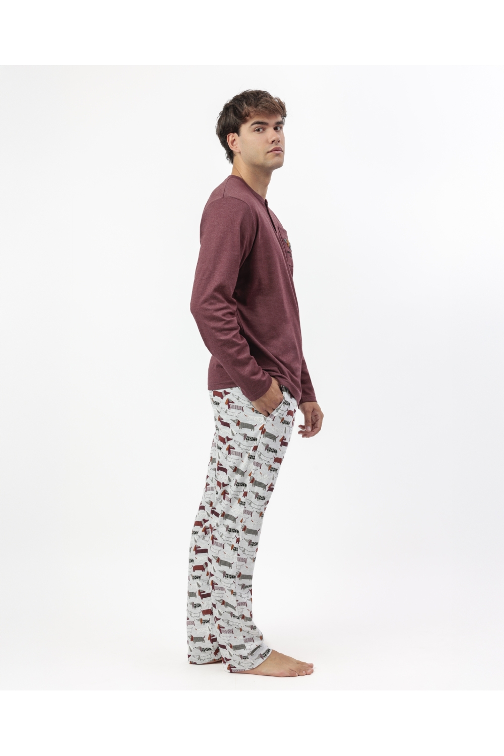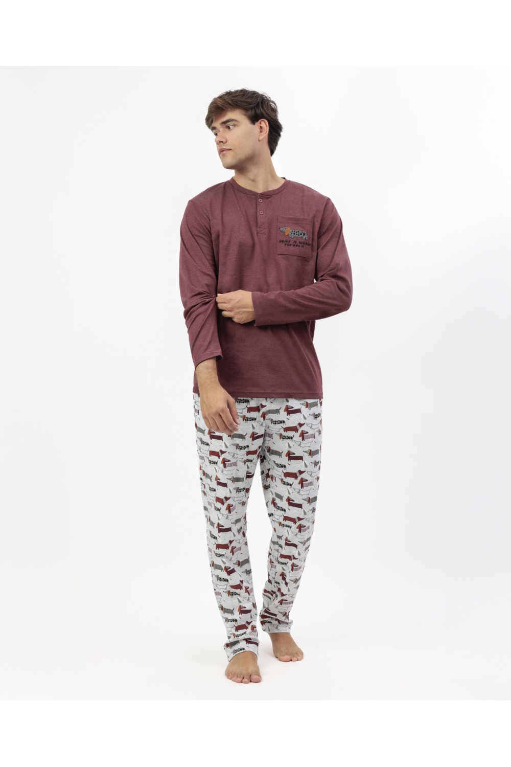 ADMAS Pijama Manga Larga Tapeta Dog Home para Hombre MARRON