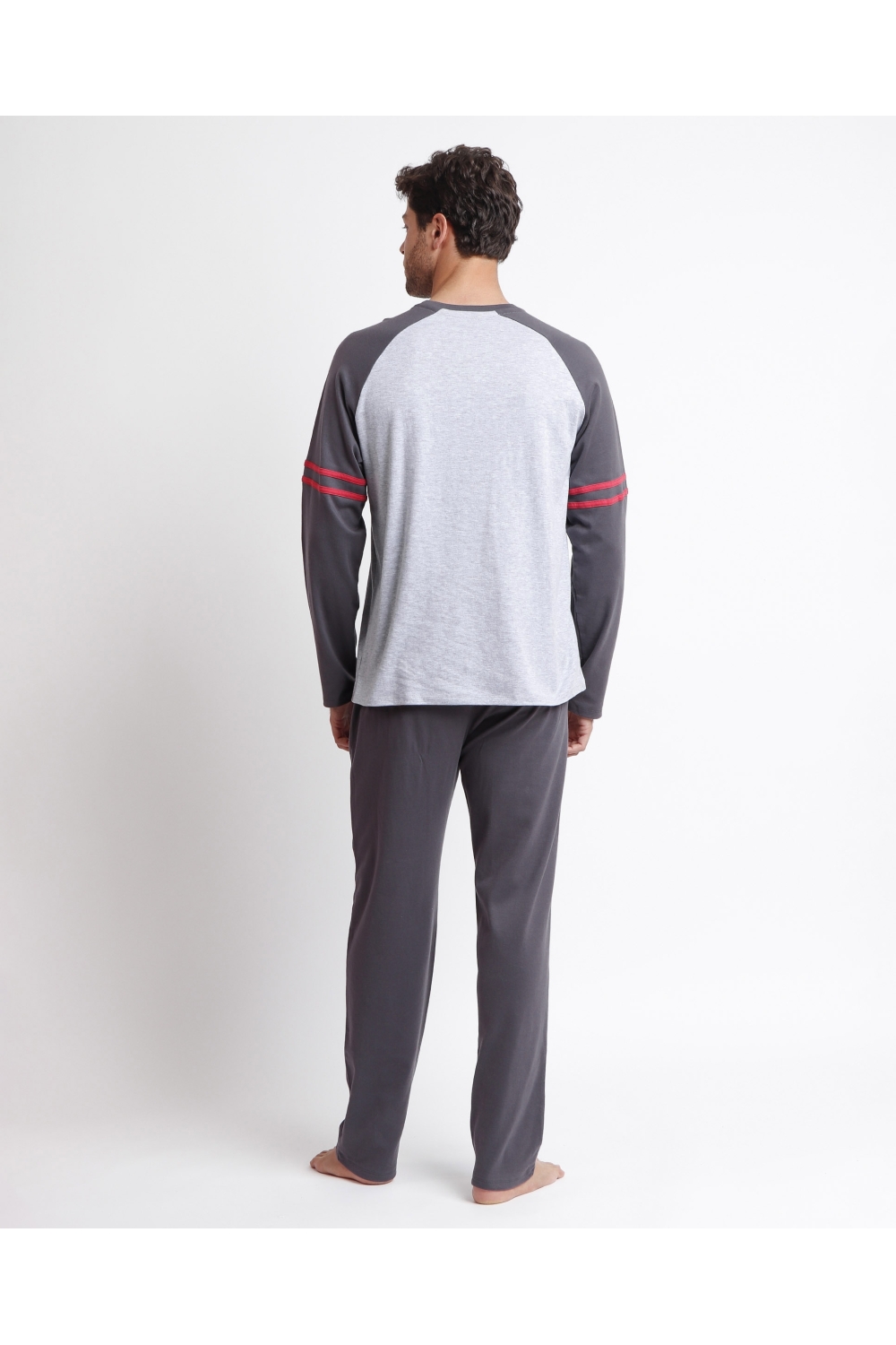 * Pijama de punto de algodón, de manga larga, cuello redondo y pantalón largo.