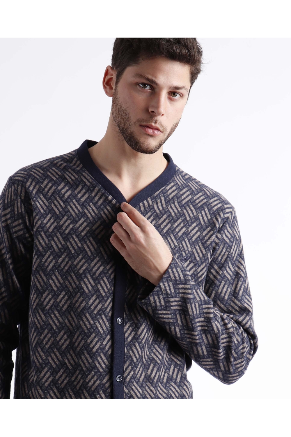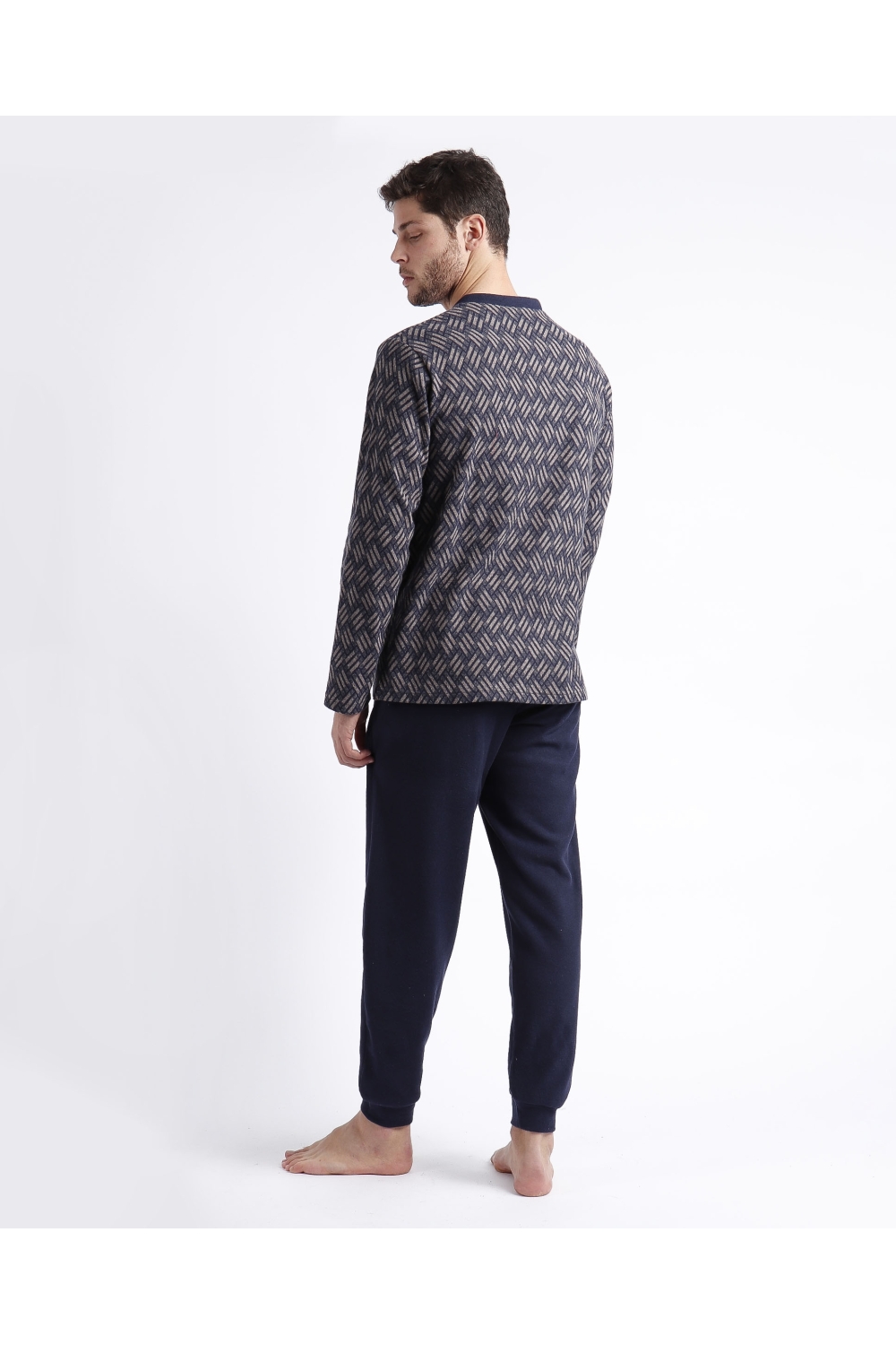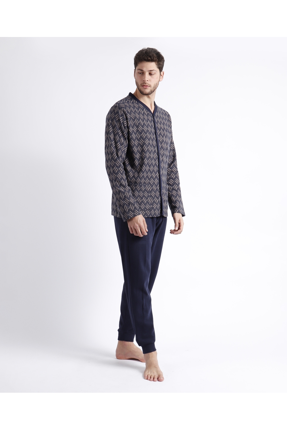 ADMAS HOME Pijama Manga Larga Abierto Popelín Home Compact para Hombre AZUL