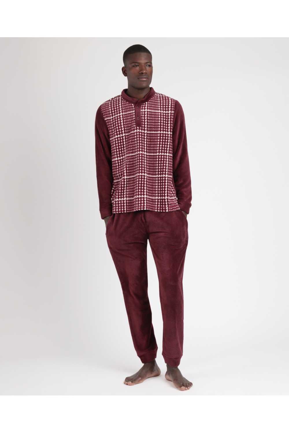 DISNEY Pijama Manga Larga Felpa Mickey Jeans para Hombre MARINO