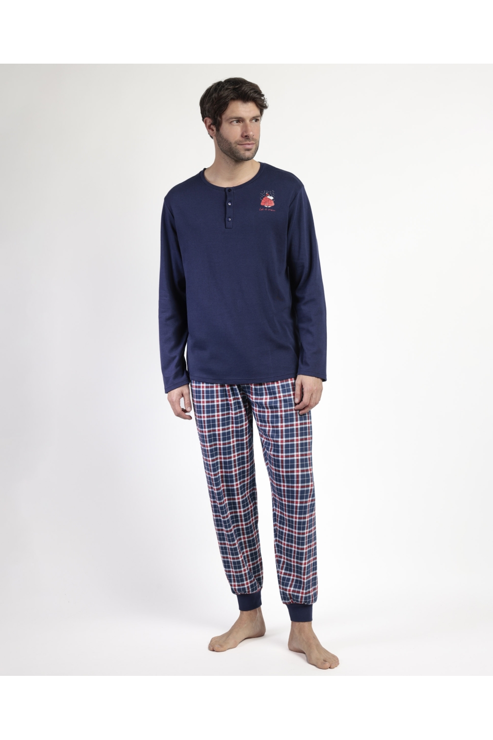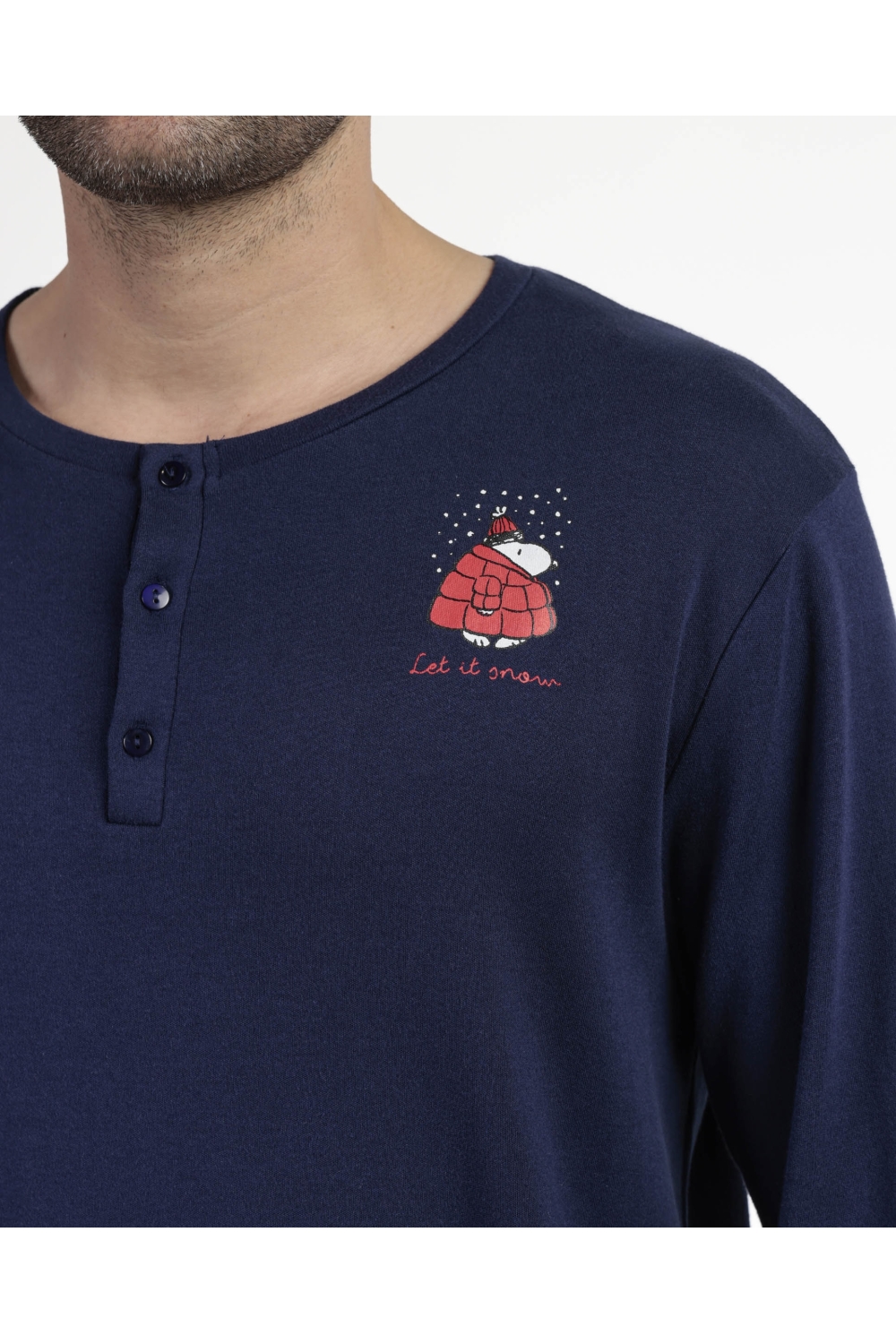 PEANUTS Pijama Manga Larga Tapeta Let It Snow para Niño MARINO