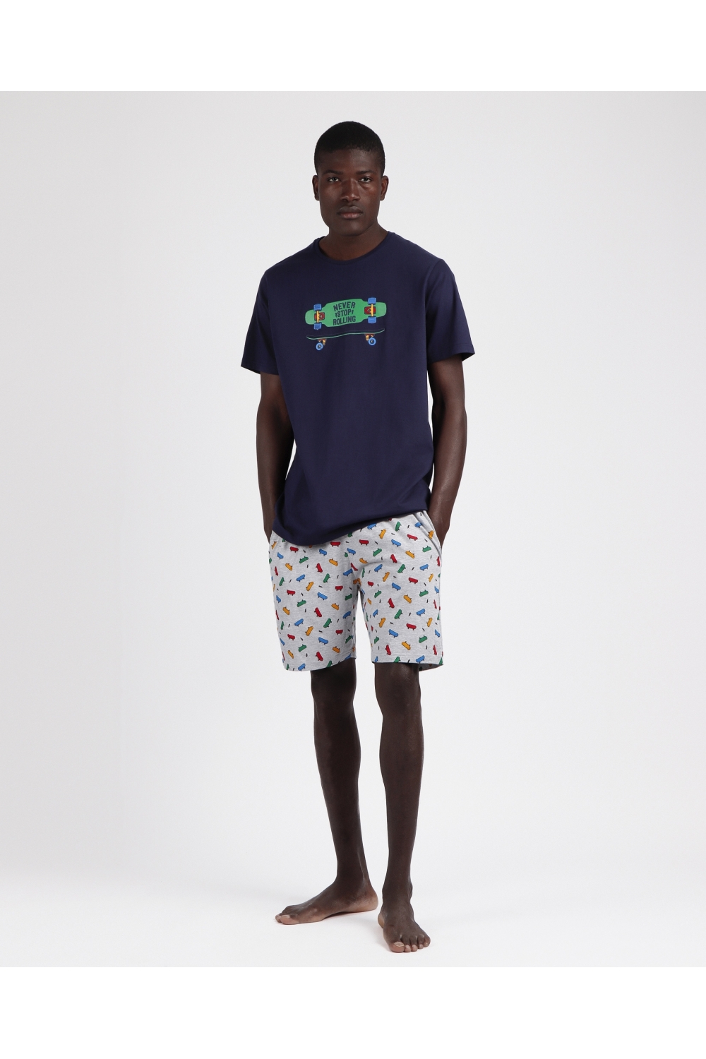DIVER Pijama Manga Corta Rayas Never Stop Rolling para Hombre MARINO