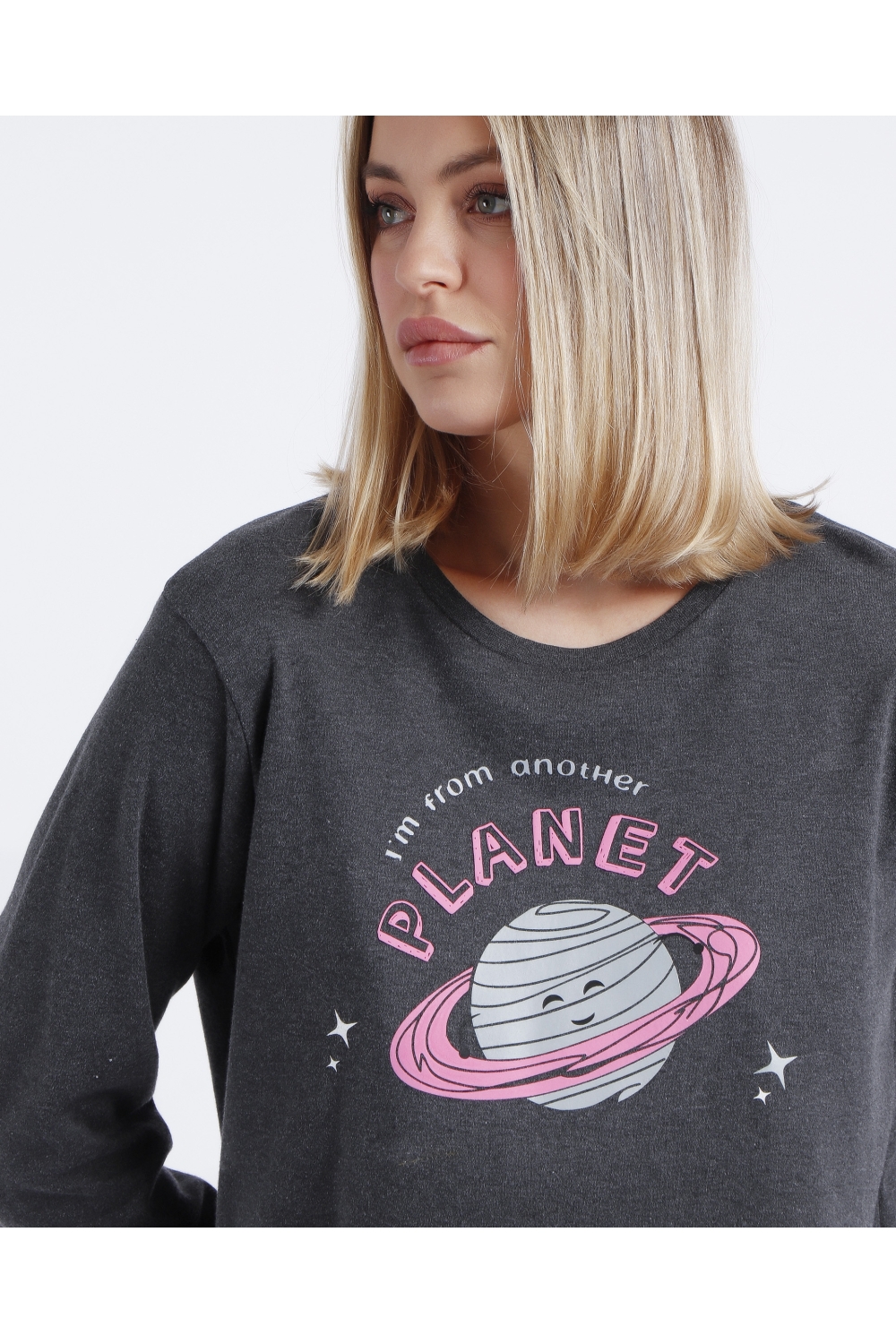 DIVER Pijama Manga Larga Planet para Niña GRIS JASPE