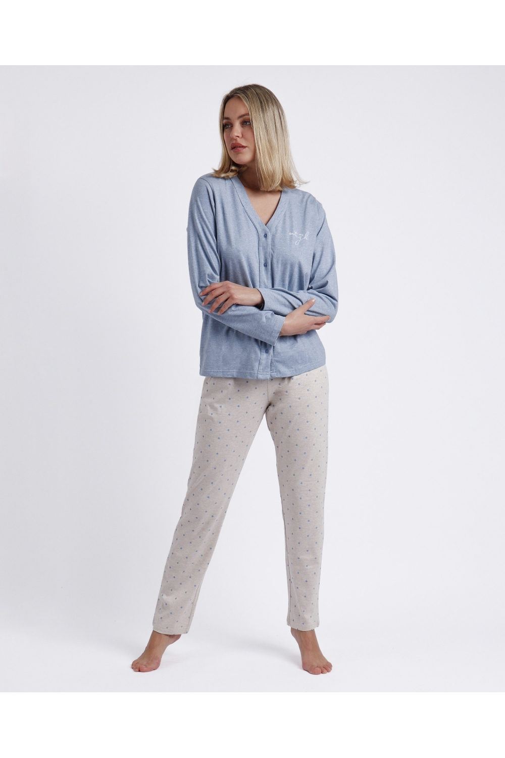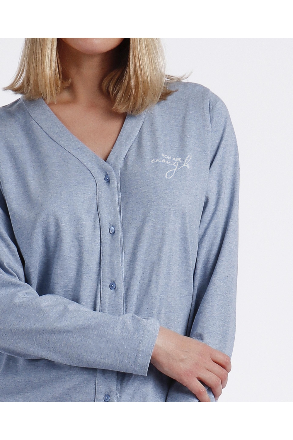 ADMAS CLASSIC Pijama Abierto Manga Larga You Are Enough para Mujer AZUL