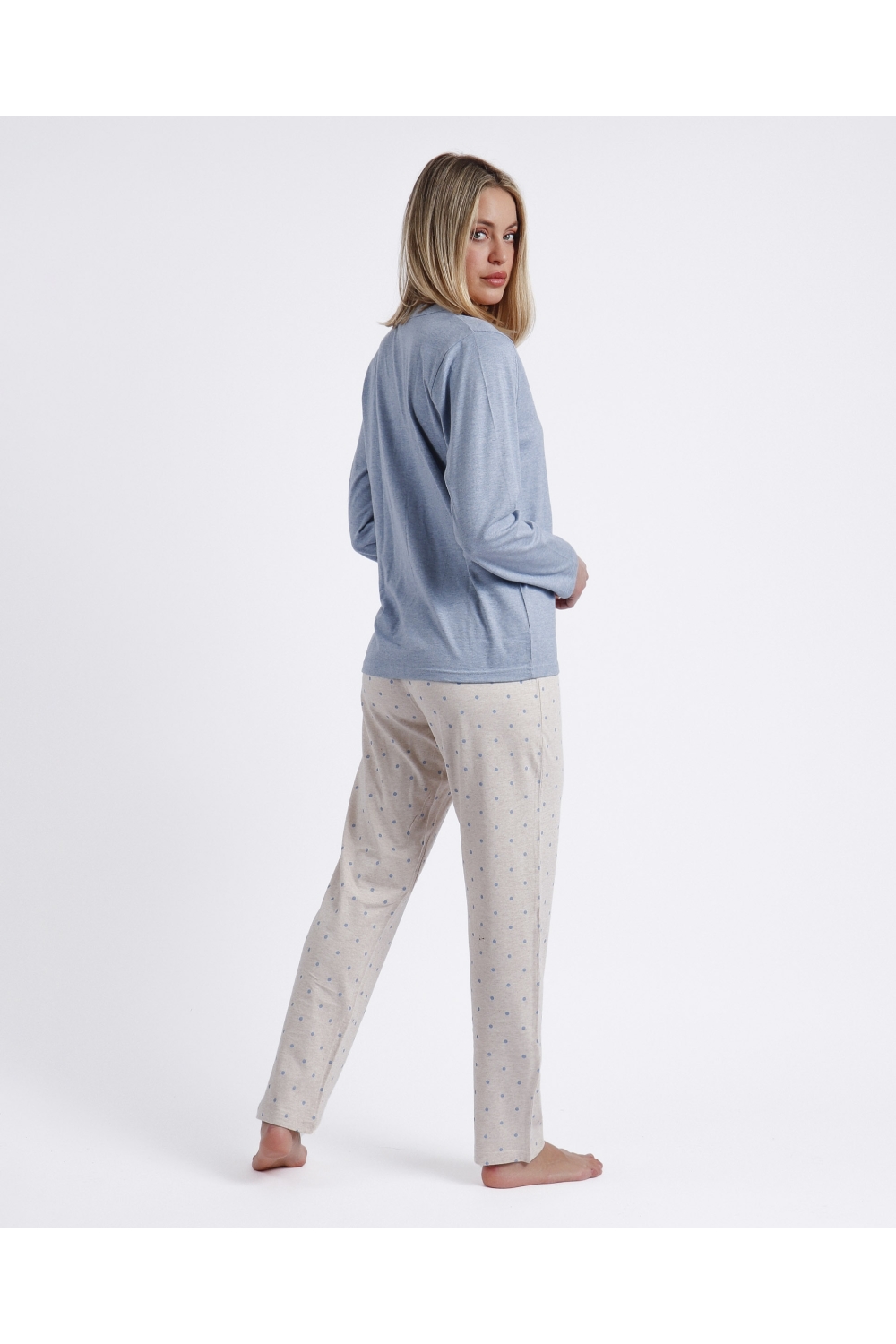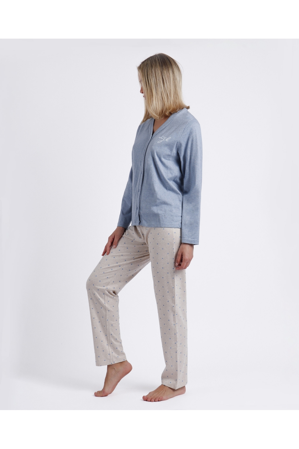 * Pijama abierto de punto de algodón, de manga larga y pantalón largo.