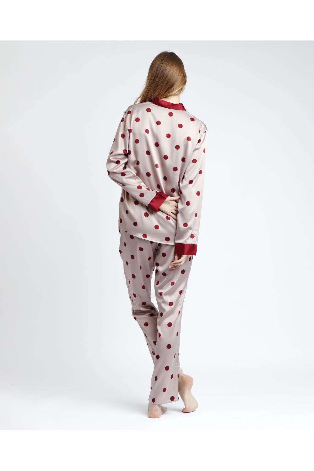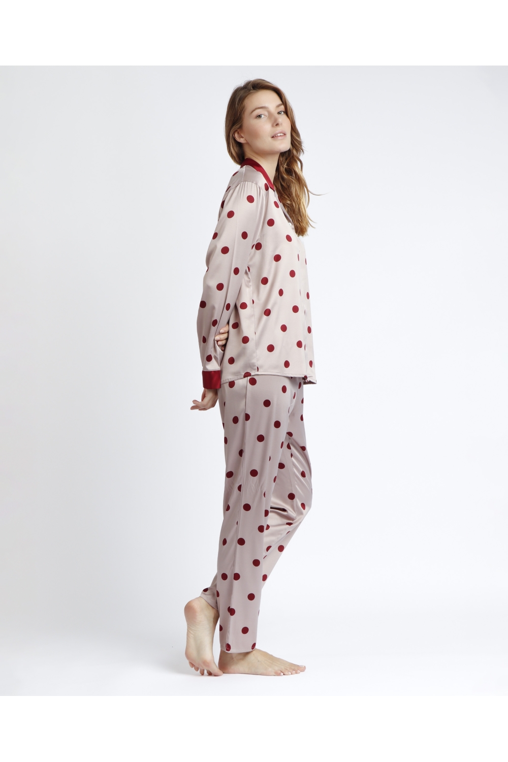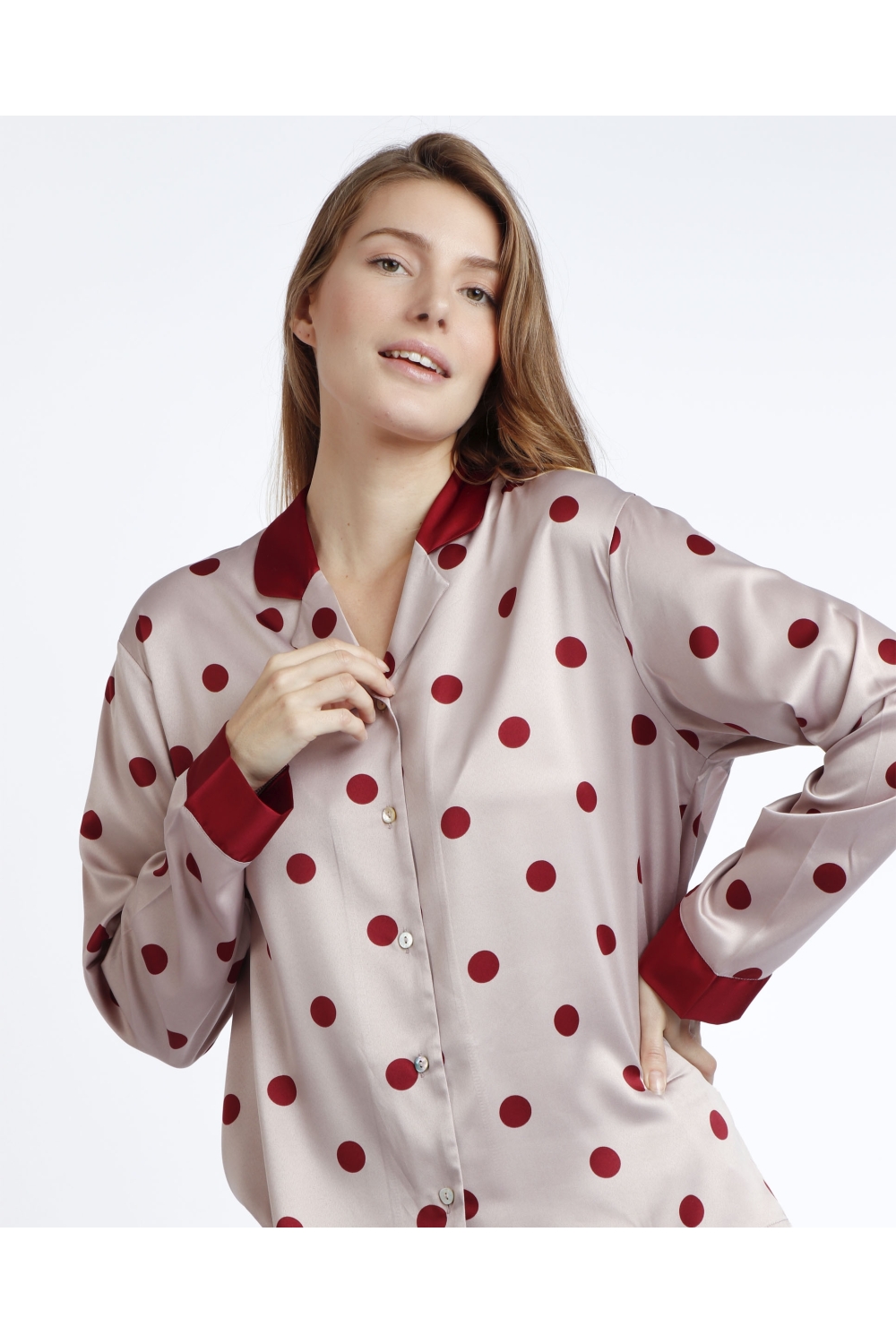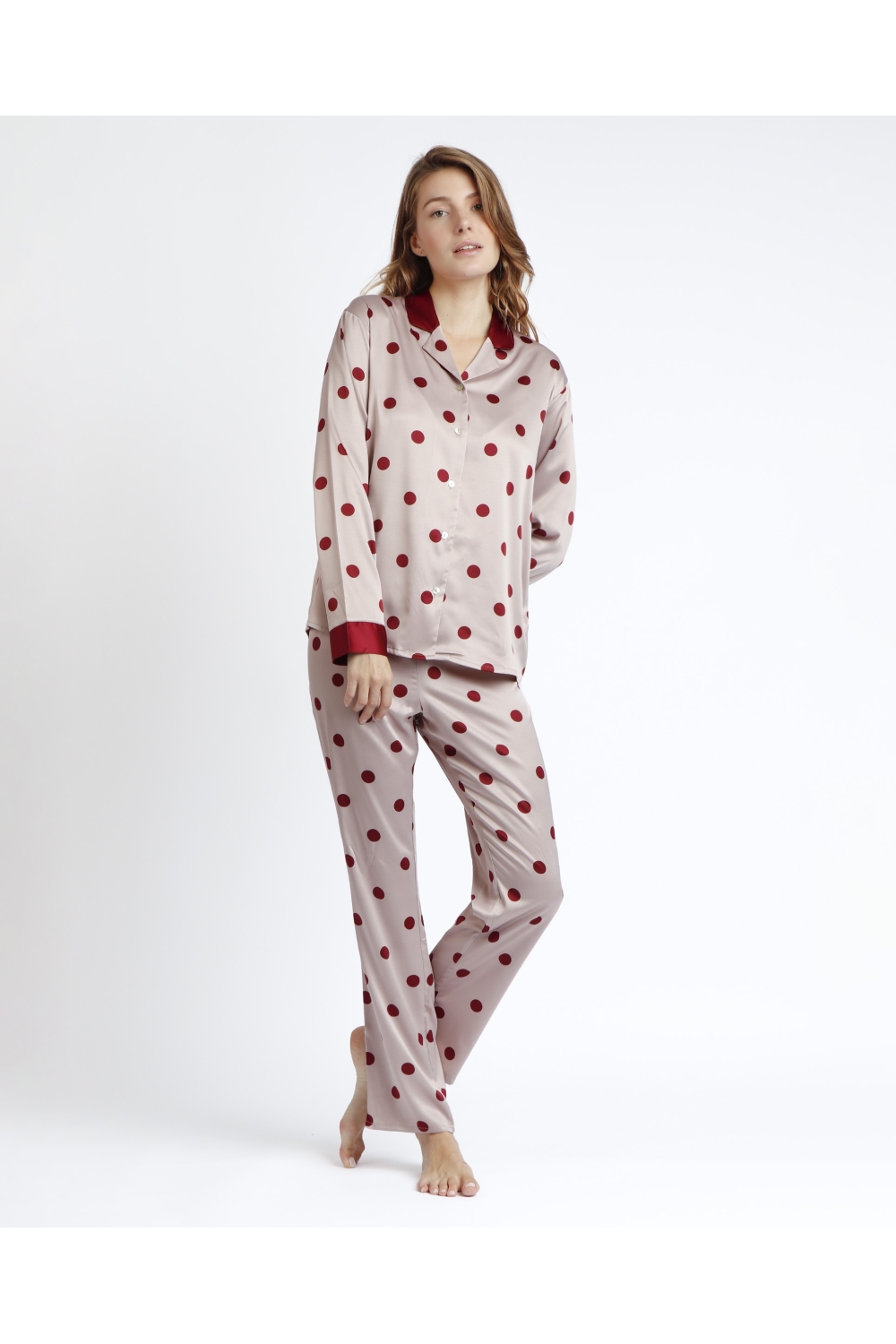 ADMAS CLASSIC Pijama Abierto Manga Larga Satin Elegant Dots para Mujer BURDEOS