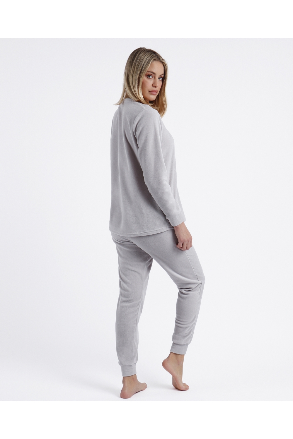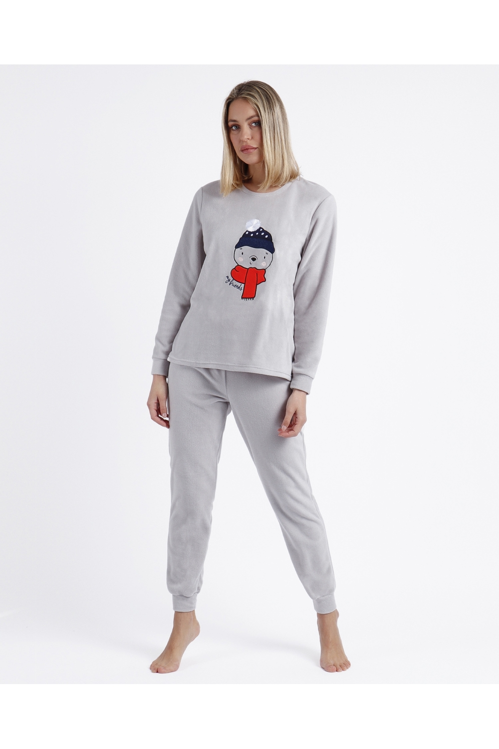 * Pijama de tejido calentito micropolar, de manga larga, cuello redondo y pantalón largo.