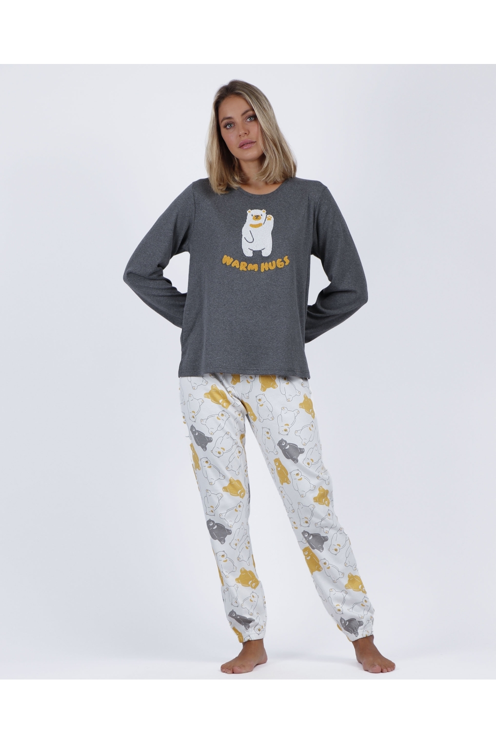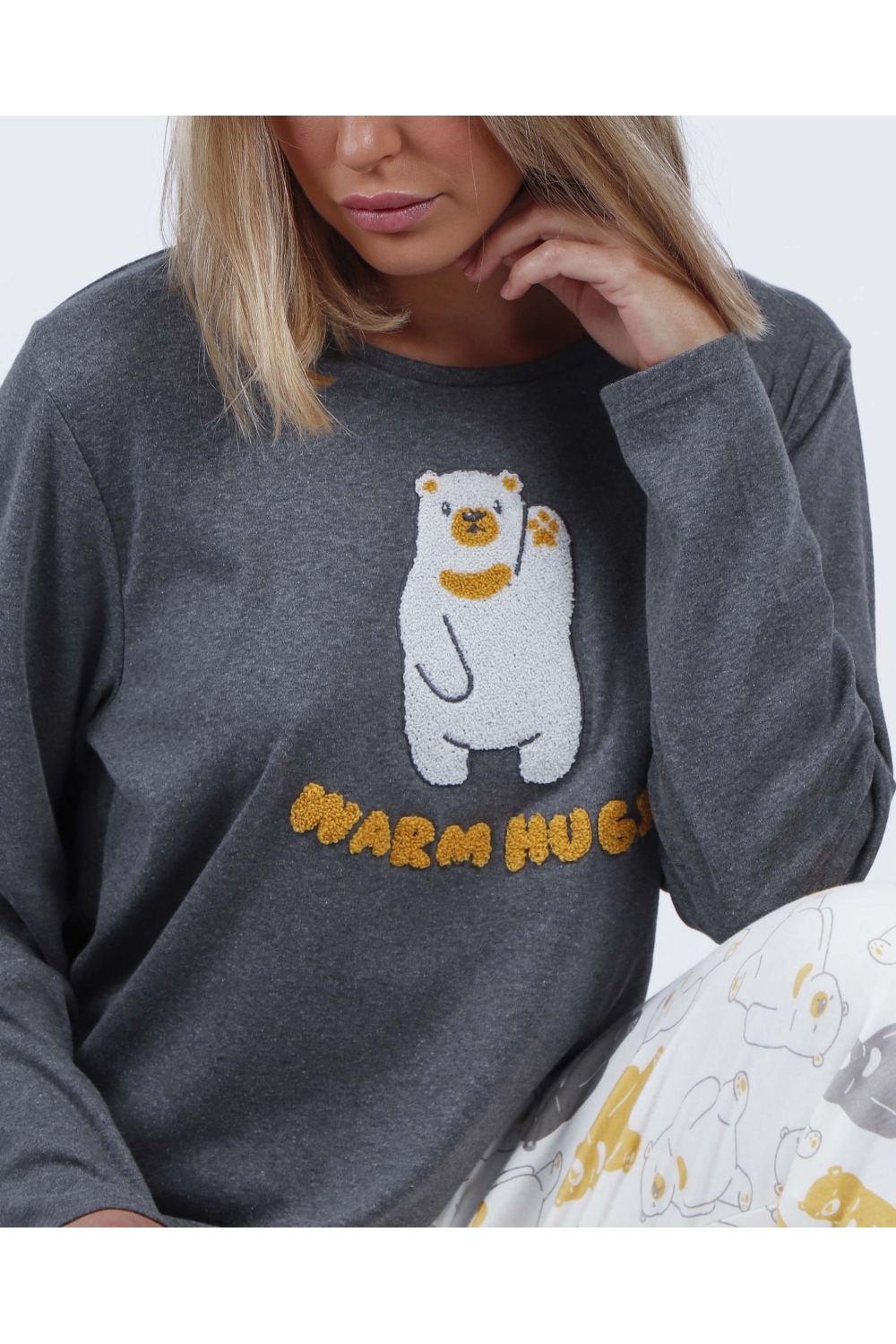ADMAS Pijama Manga Larga Warm Hugs para Mujer GRIS JASPE
