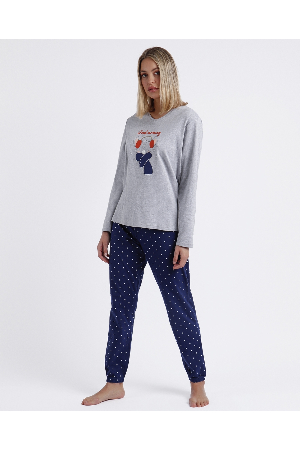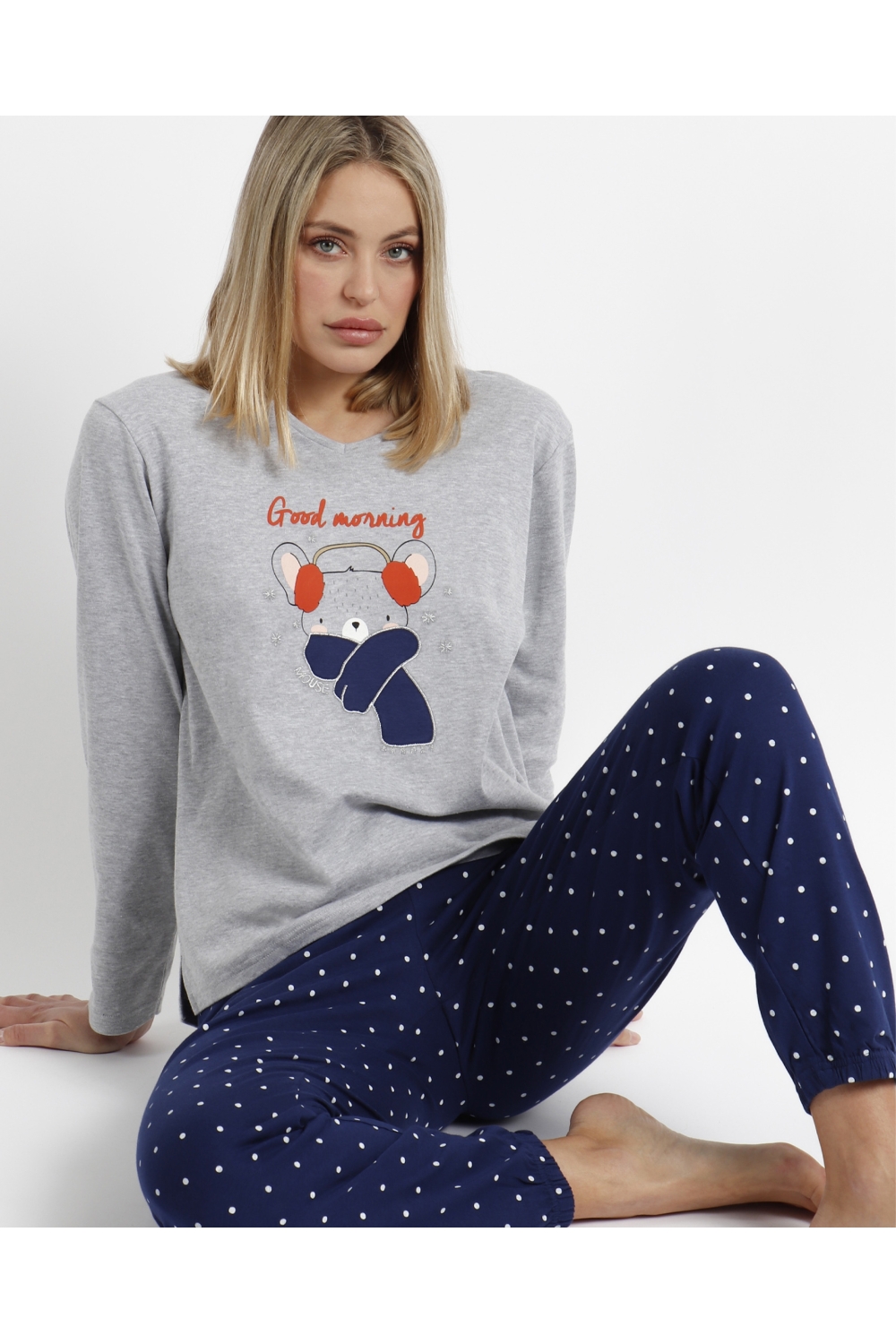 ADMAS Pijama Manga Larga Good Morning Mouse para Niña GRIS JASPE
