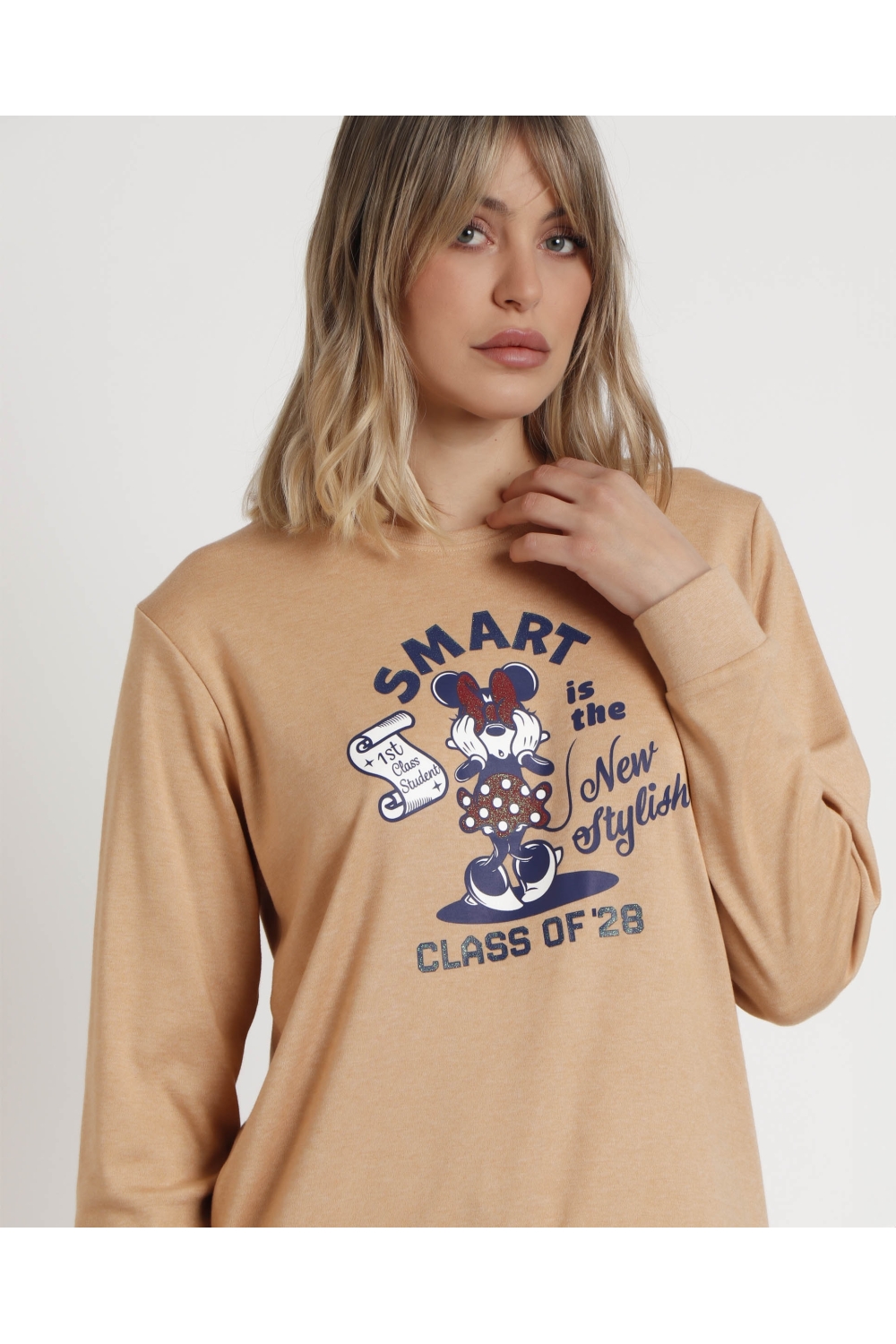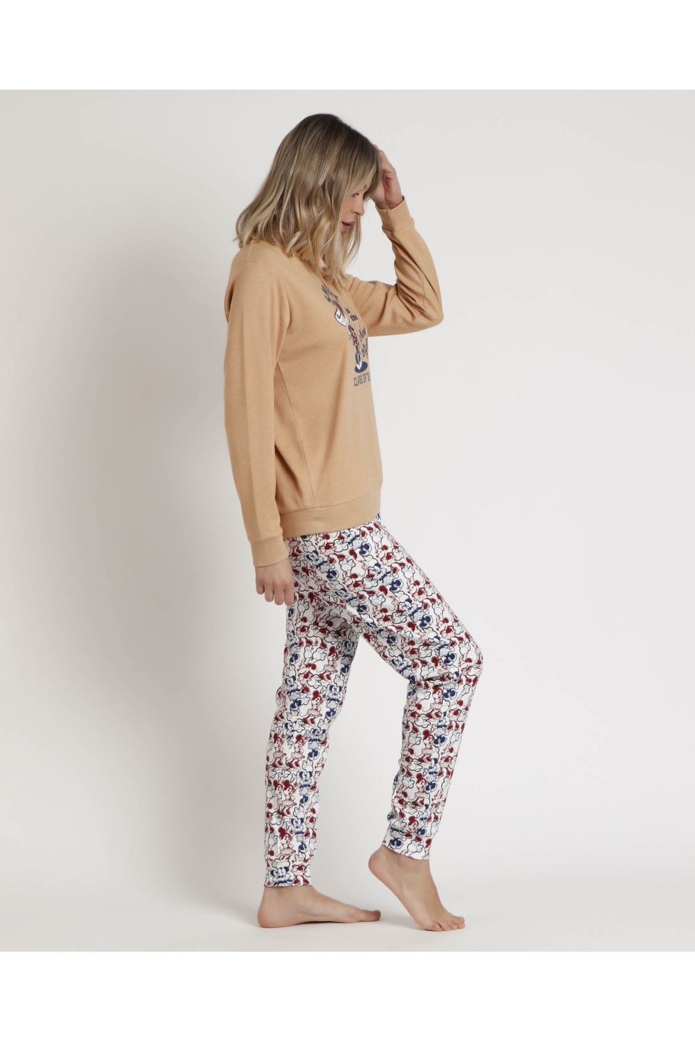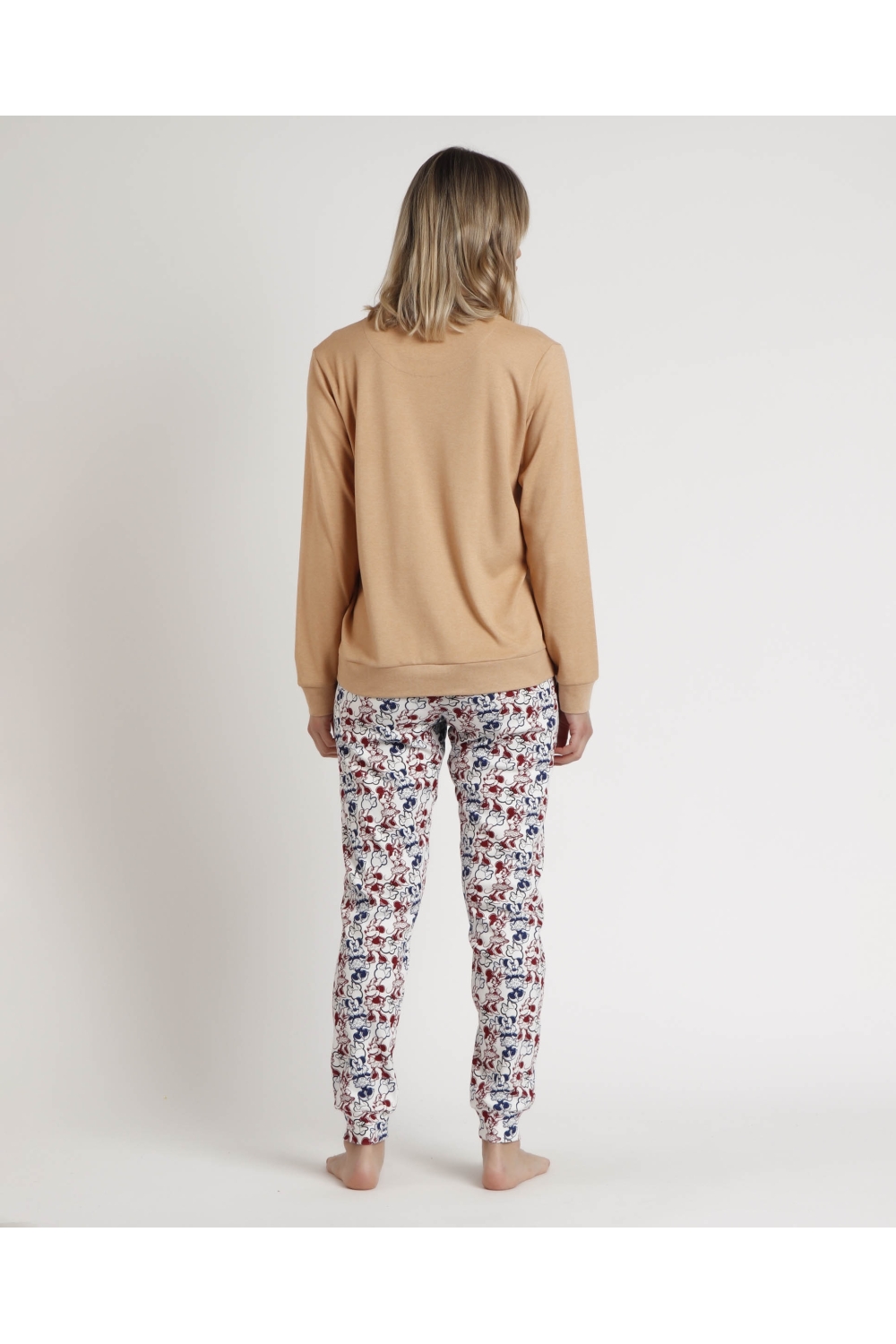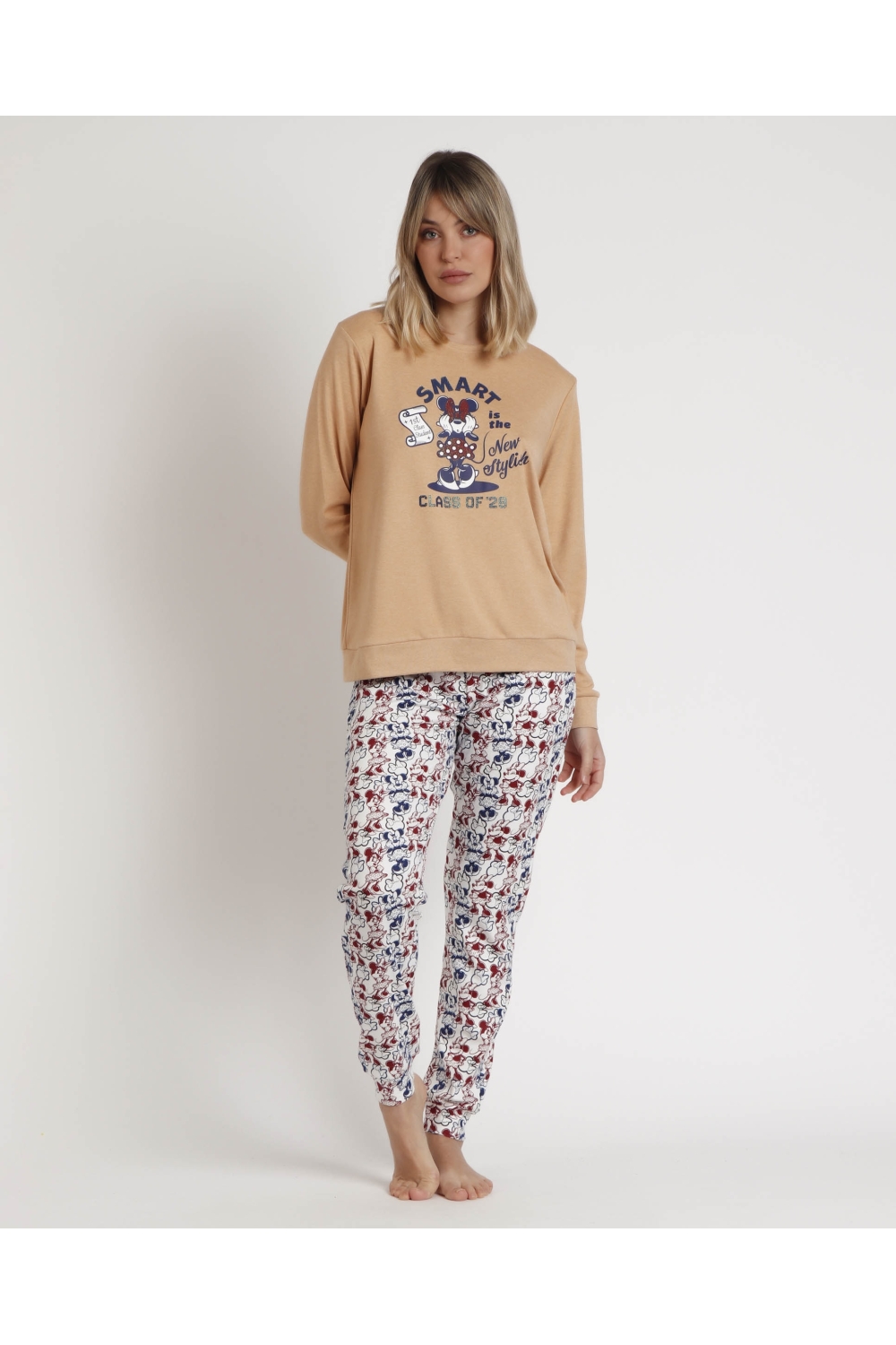 DISNEY Pijama Manga Larga Minnie College para Mujer CAMEL
