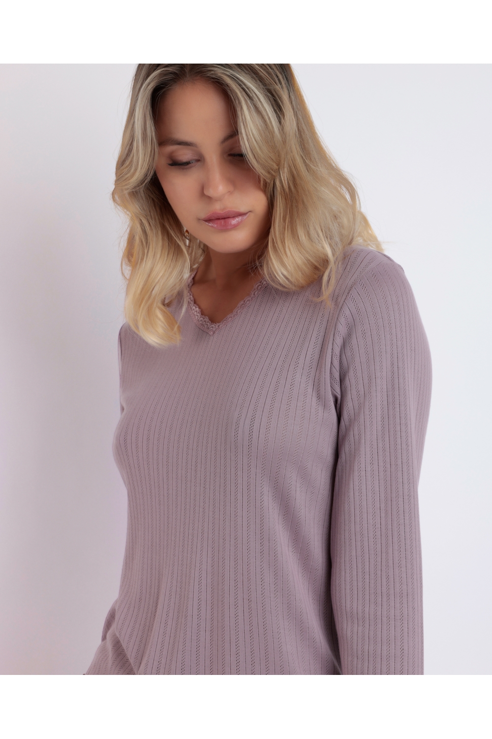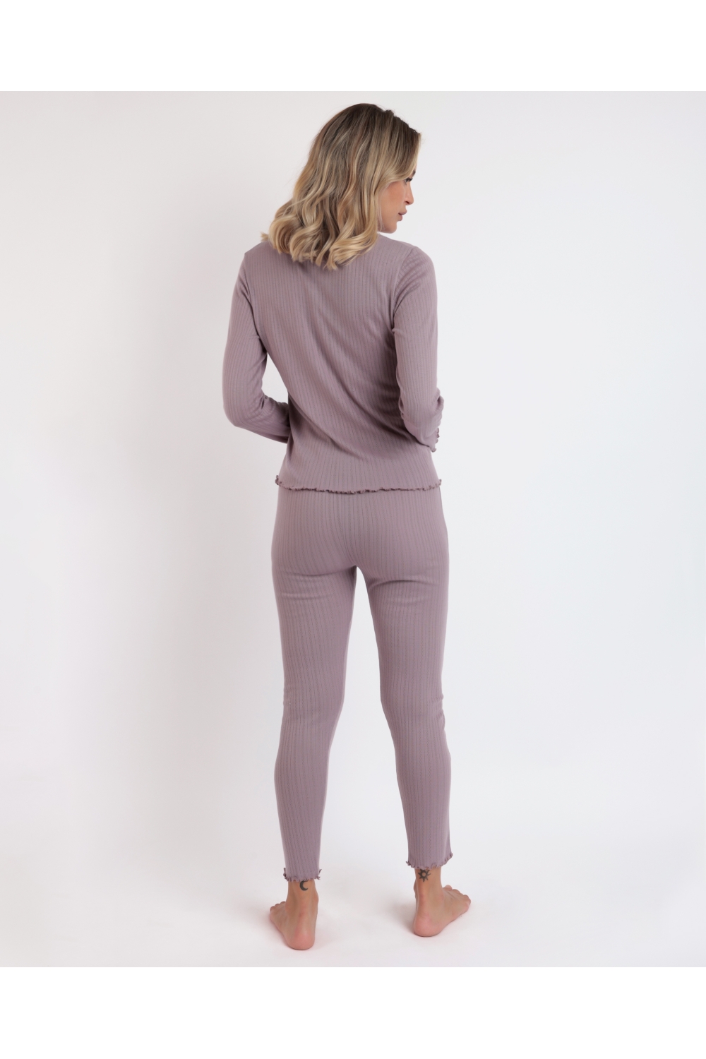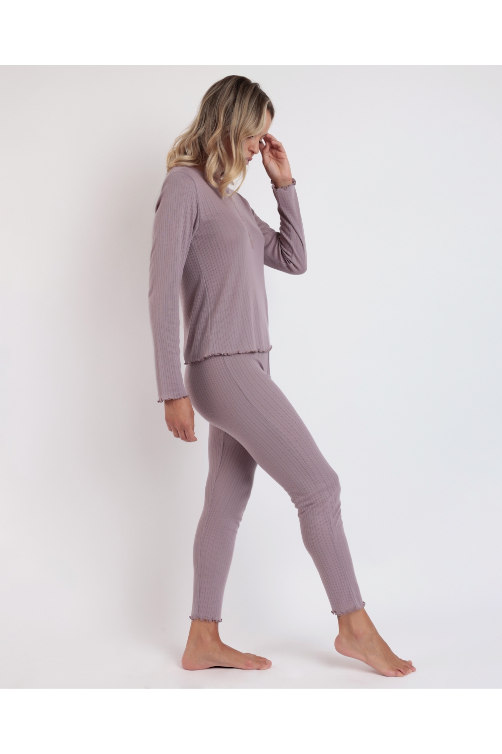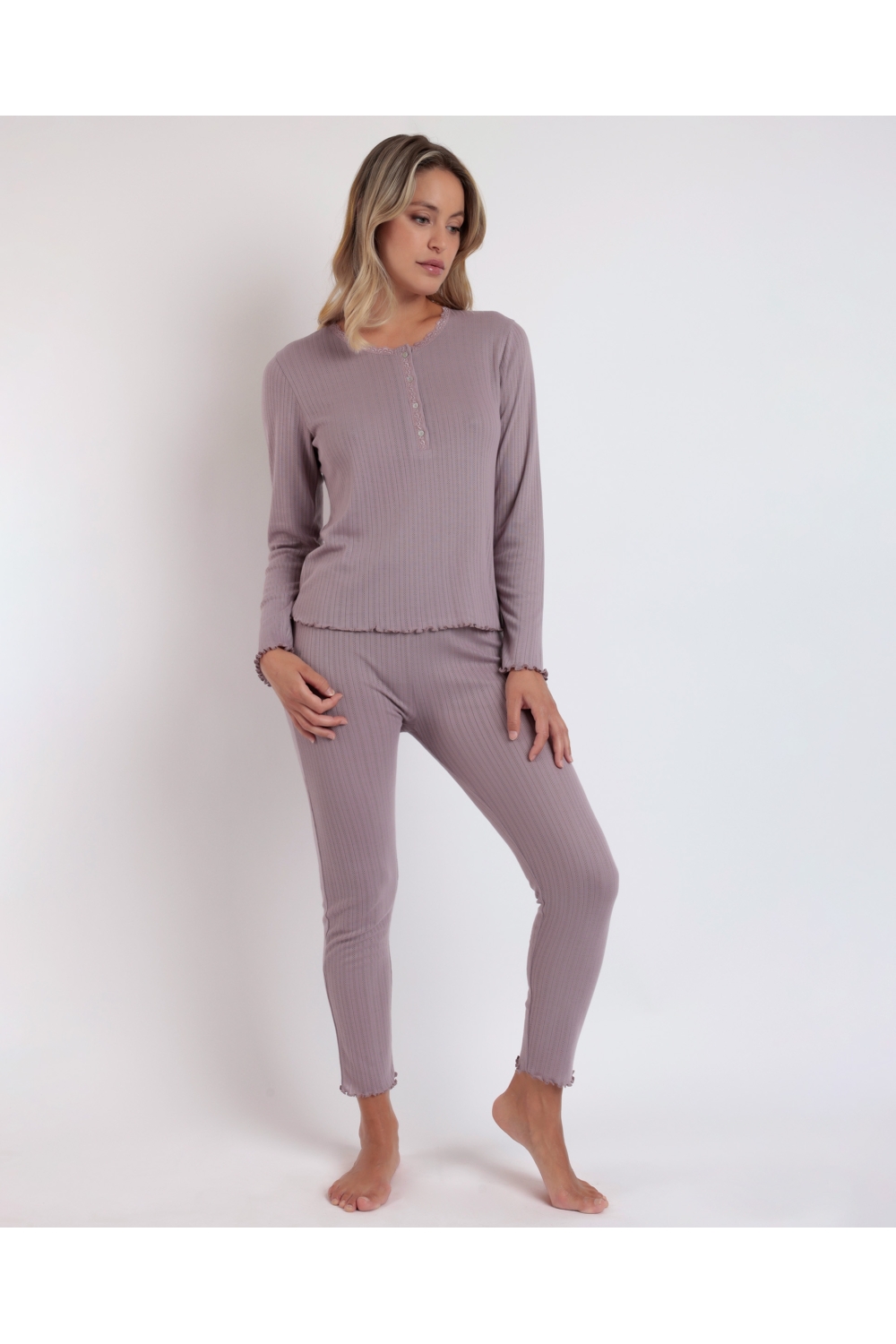 ADMAS HOME Pijama Manga Larga Tapeta Soft Canalé para Mujer BERENJENA