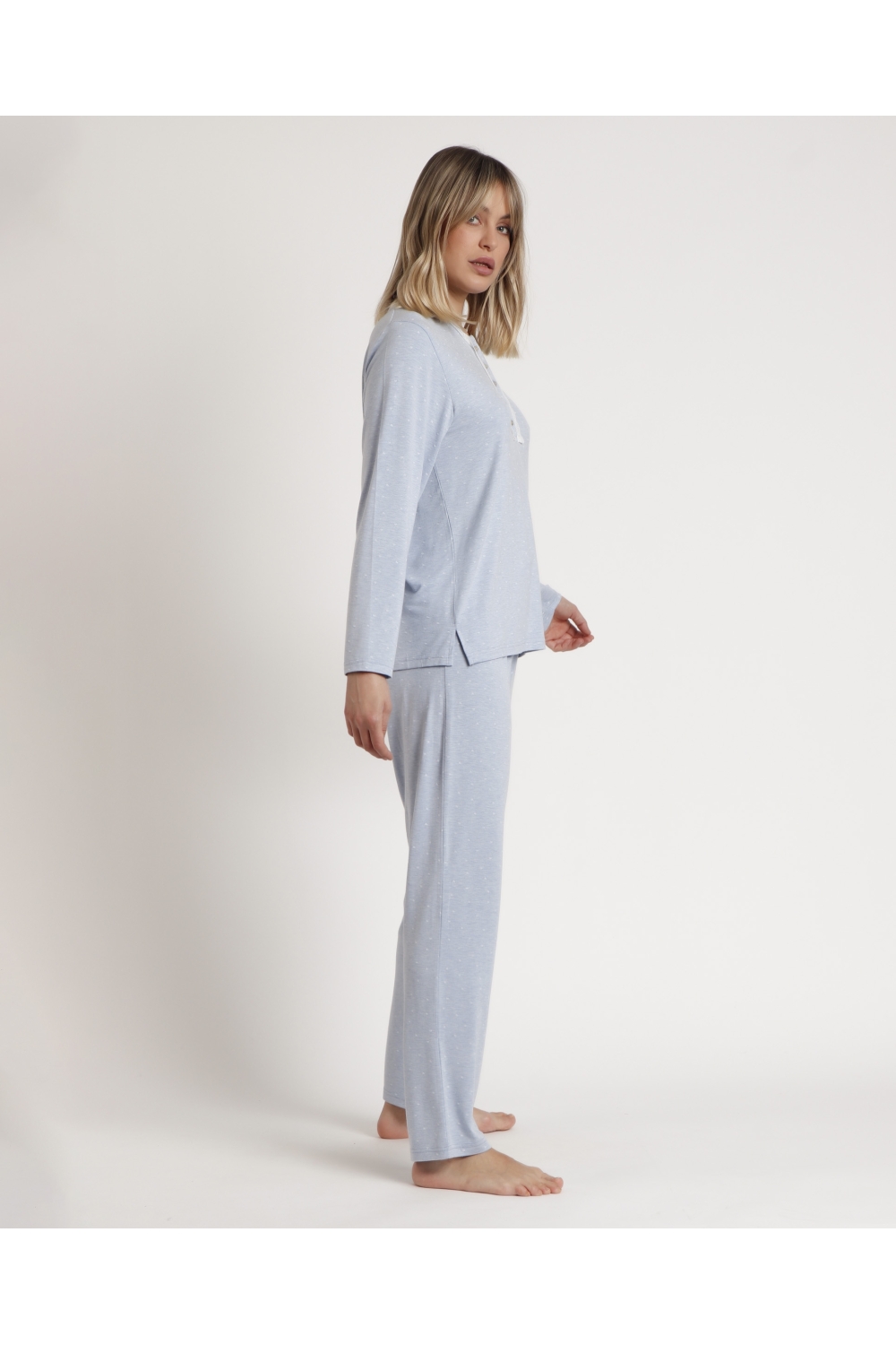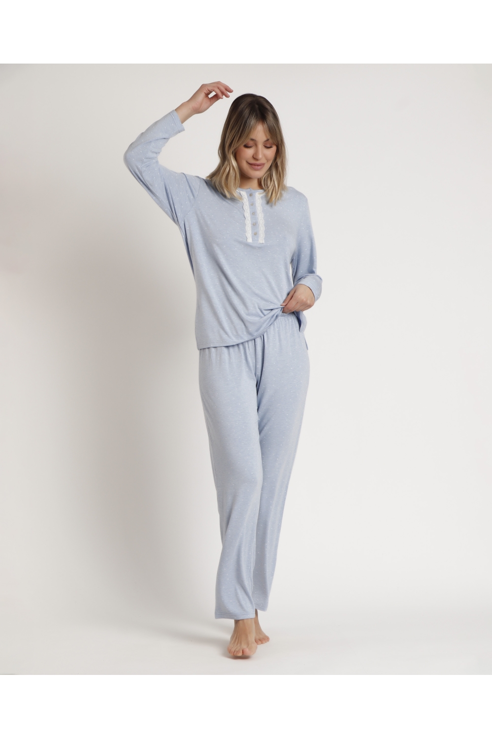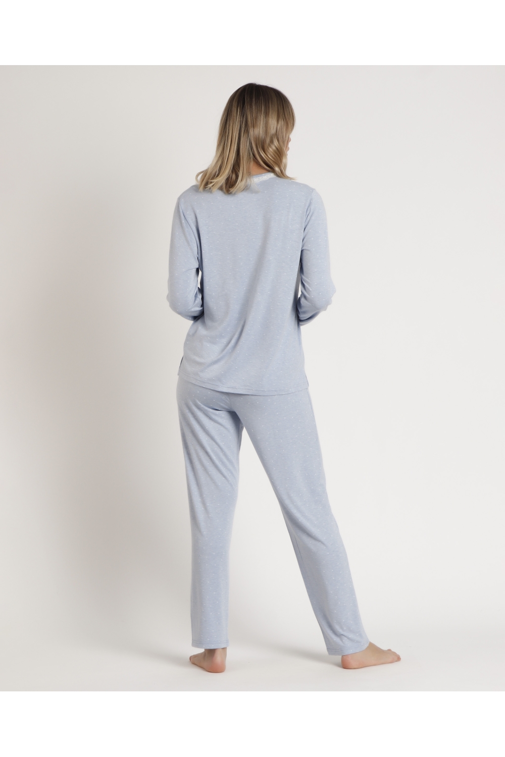 * Pijama de punto viscosa, de manga larga, cuello redondo con tapeta con botones y pantalón largo.