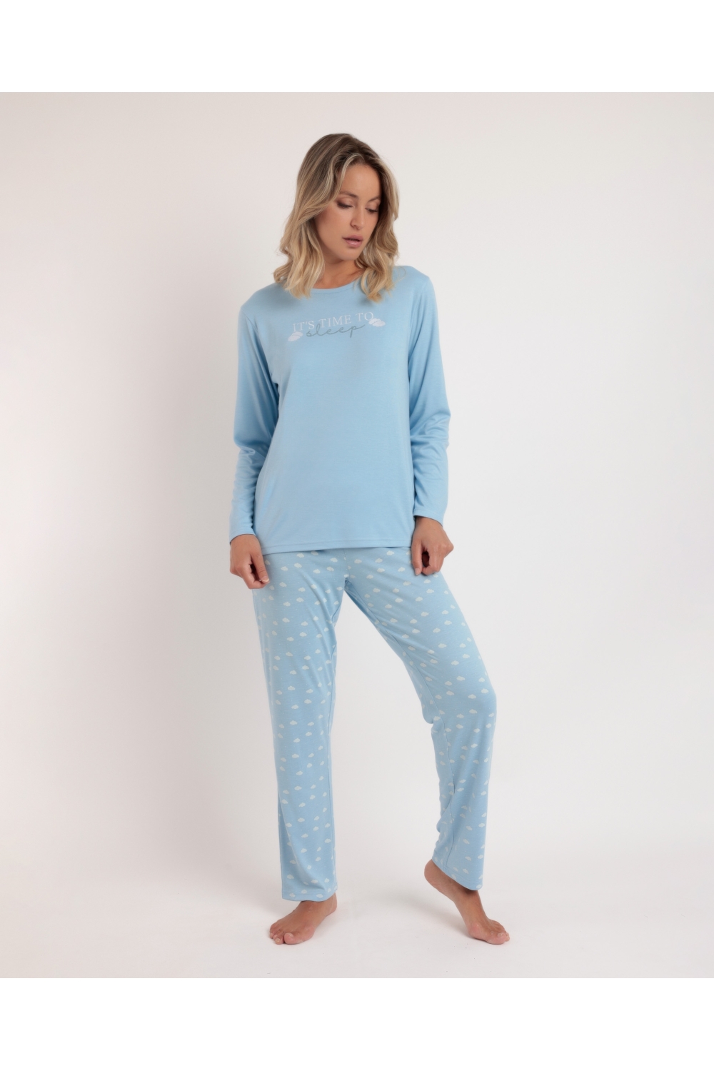 STAY AT HOME Bata Manga Larga Calentita It´s Time To Sleep para Mujer AZUL