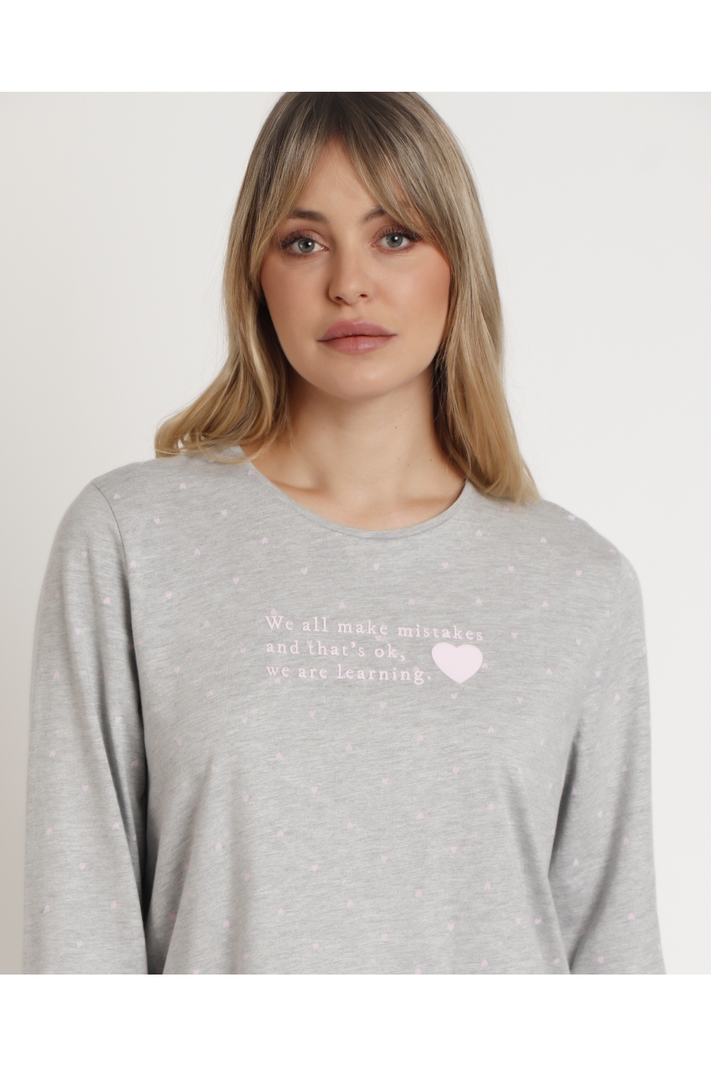 ADMAS CLASSIC Camisola Manga Larga Pink Hearts para Mujer GRIS JASPE