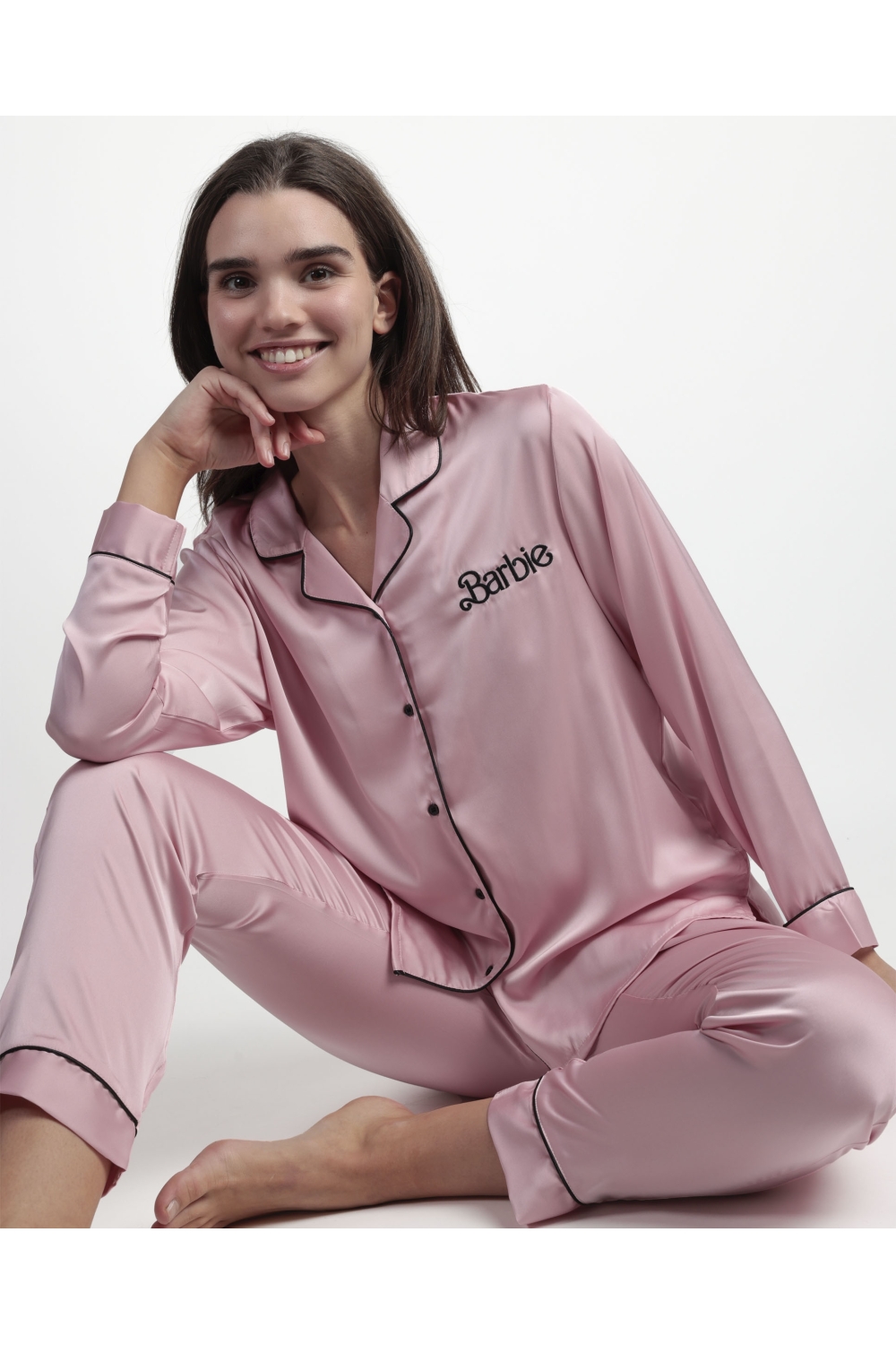 BARBIE Pijama Manga Larga Satin Barbie Vintage para Mujer