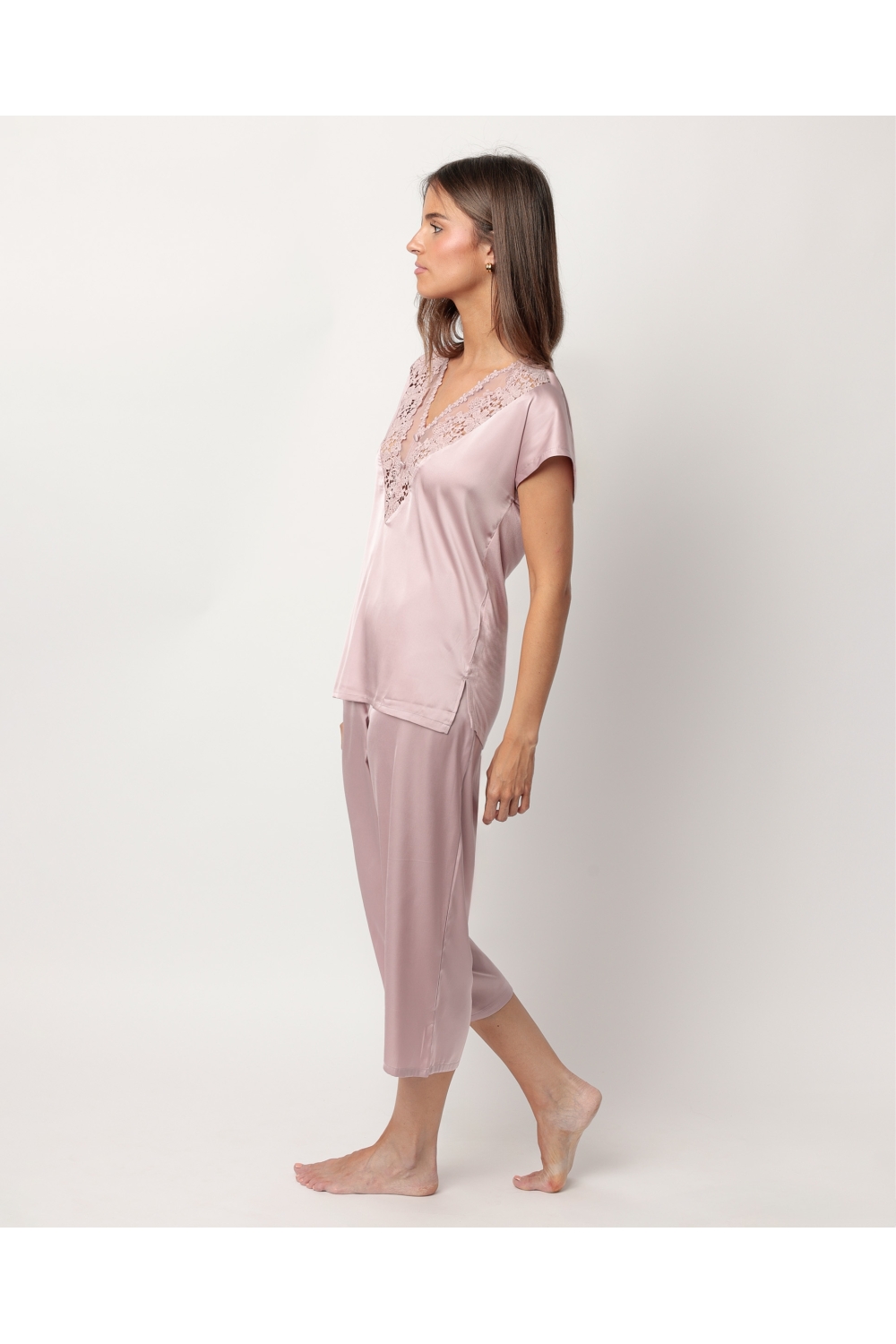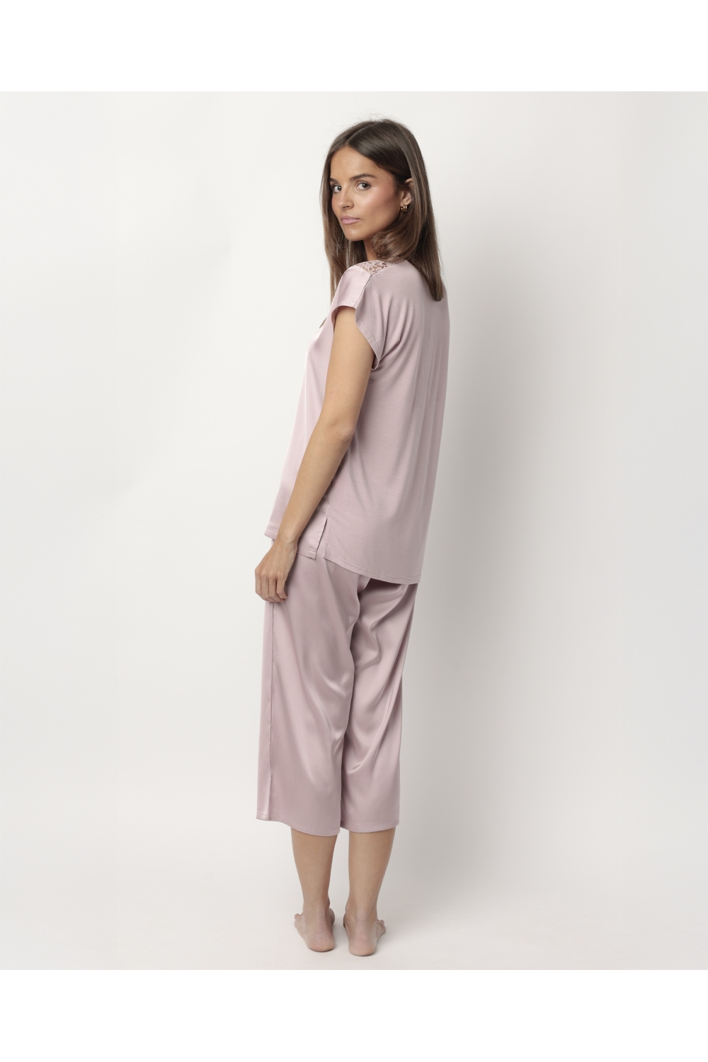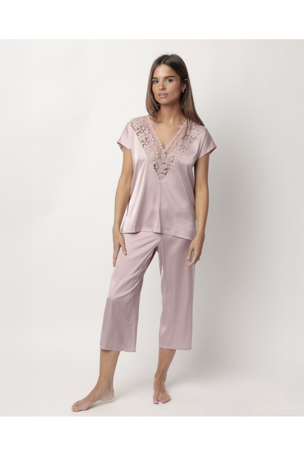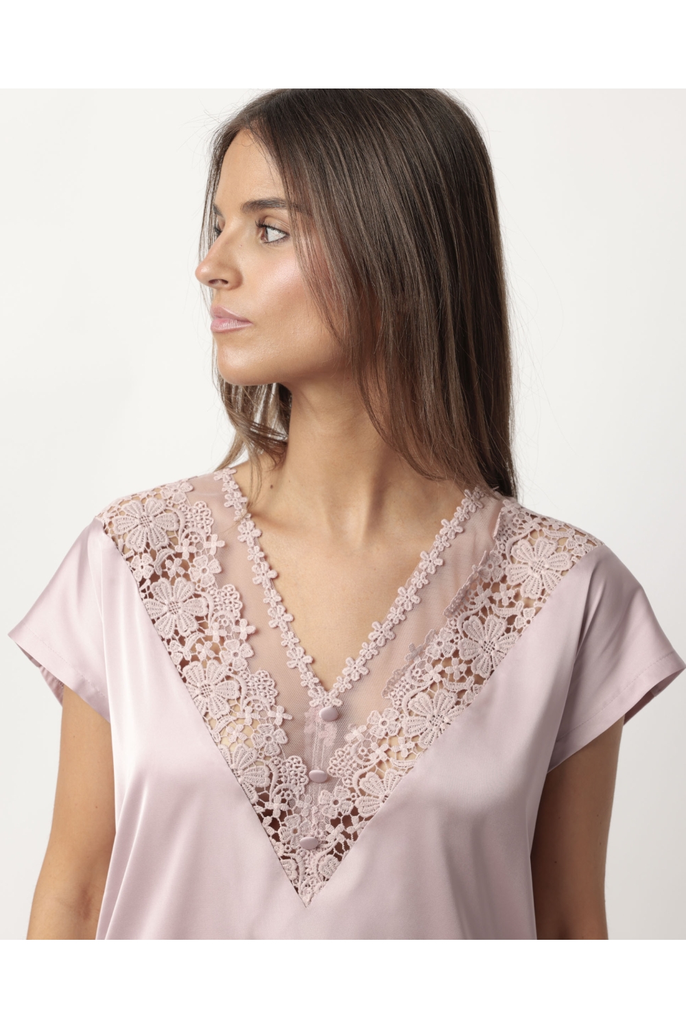 ADMAS CLASSIC Pijama Manga Caída Satin And Guipur para Mujer CAVA
