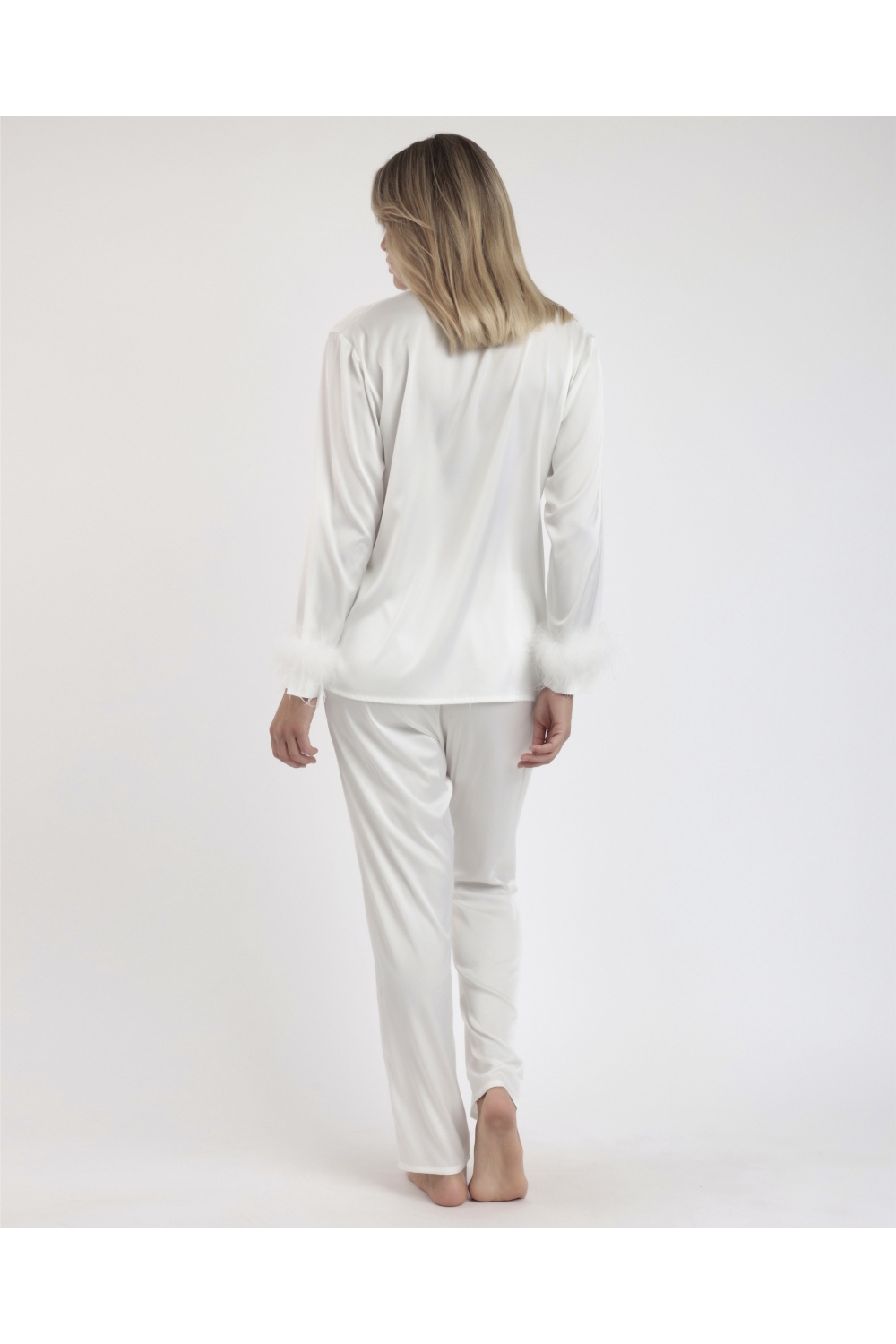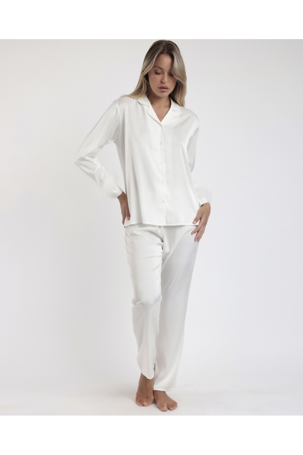 ADMAS LUXURY Pijama Abierto Manga Larga Plumas Marabu Luxe para Mujer PETALO