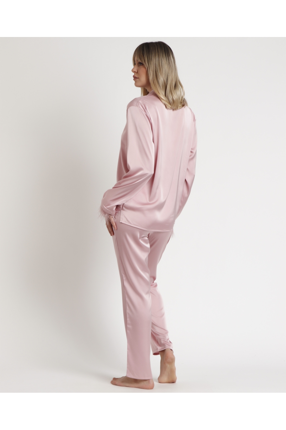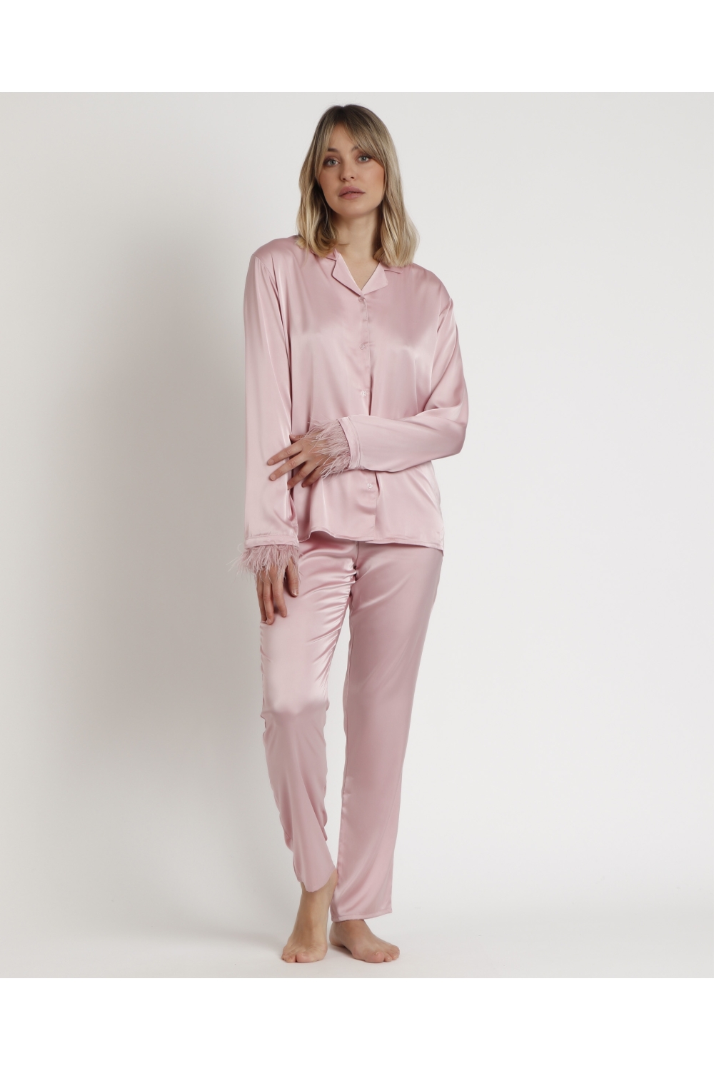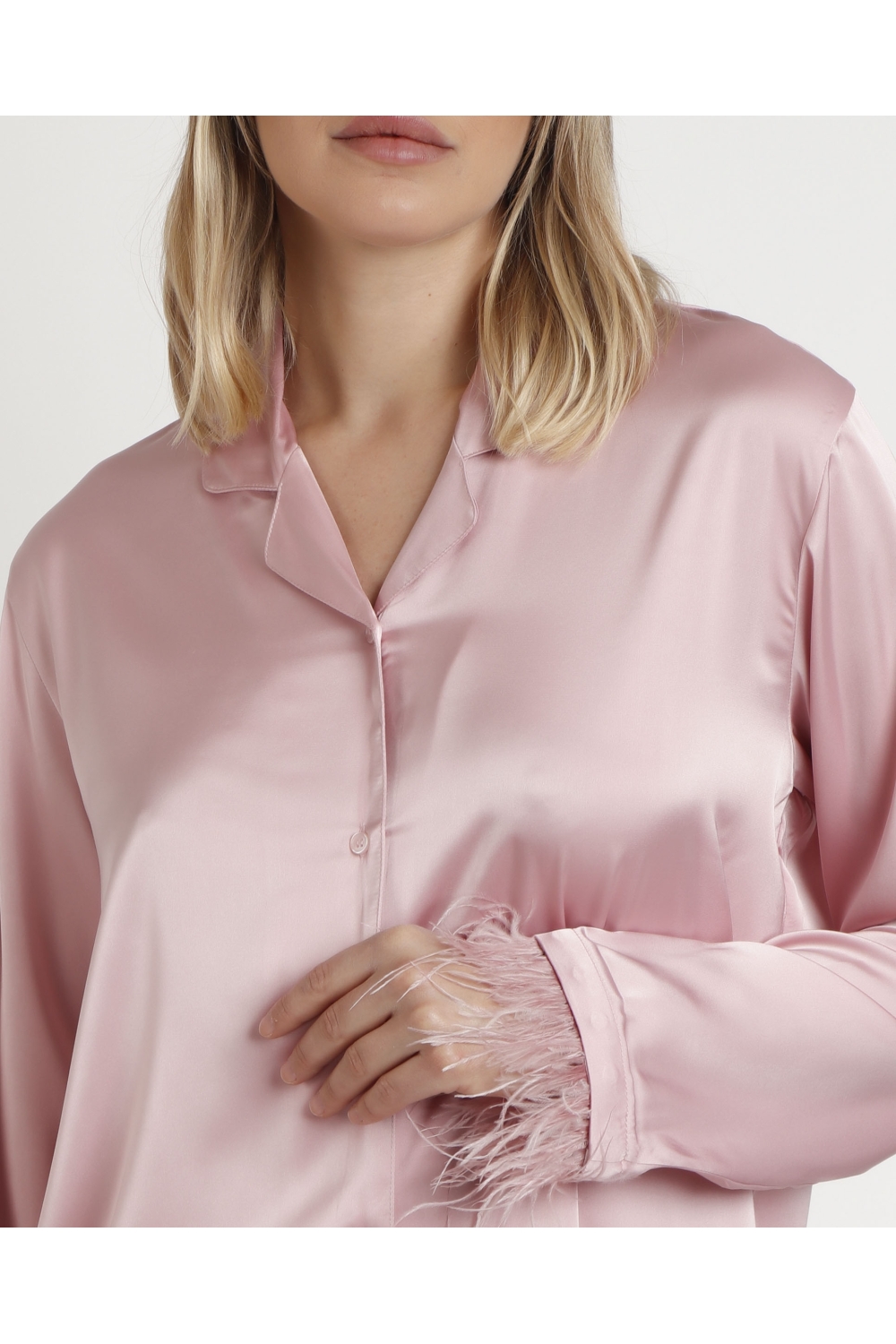 ADMAS LUXURY Pijama Abierto Manga Larga Plumas Marabu Luxe para Mujer BLANCO