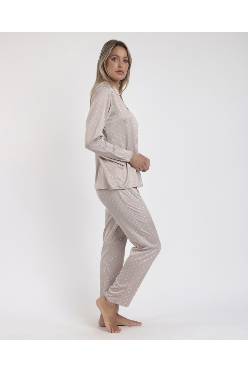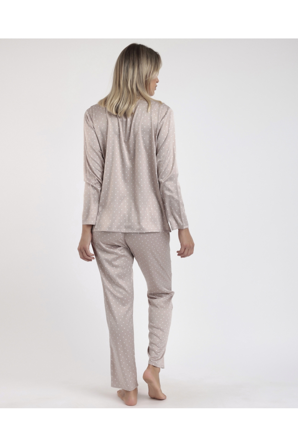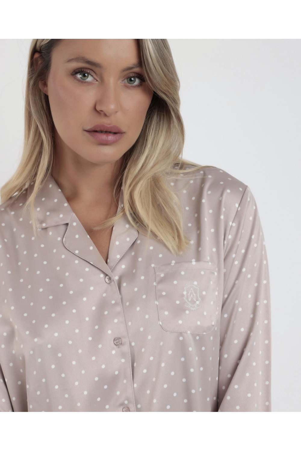 ADMAS CLASSIC Pijama Novia Abierto Manga Larga Dots Lace para Mujer PIEDRA