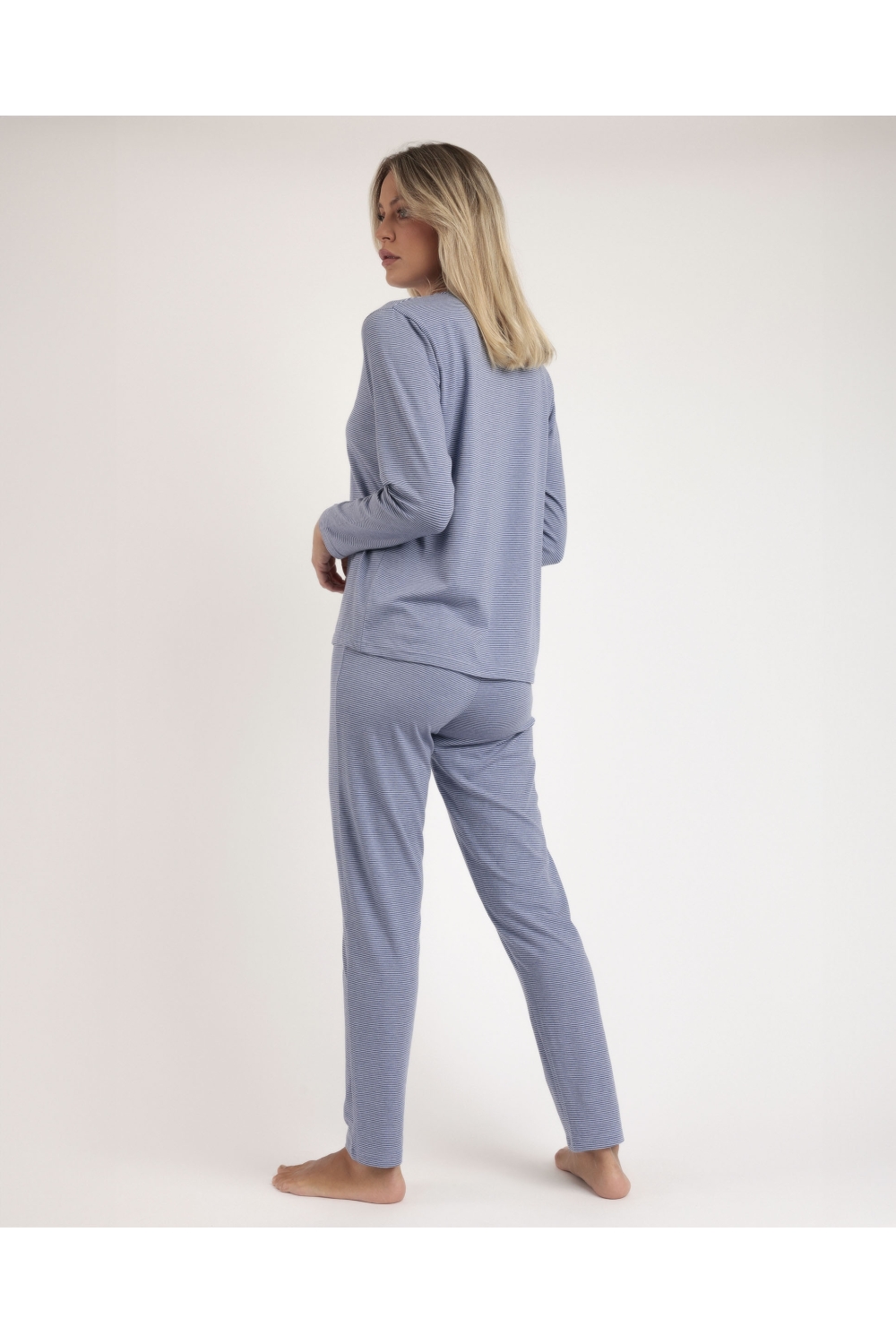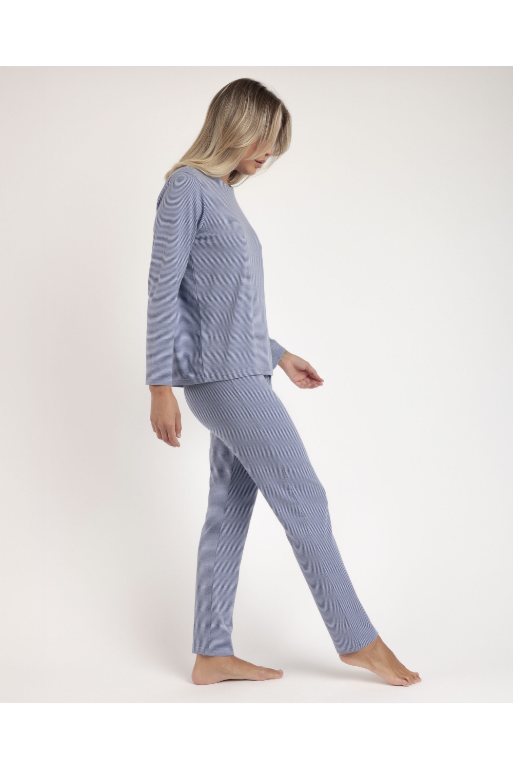 STAY AT HOME Pijama Manga Larga Soft Stripes para Mujer AZUL