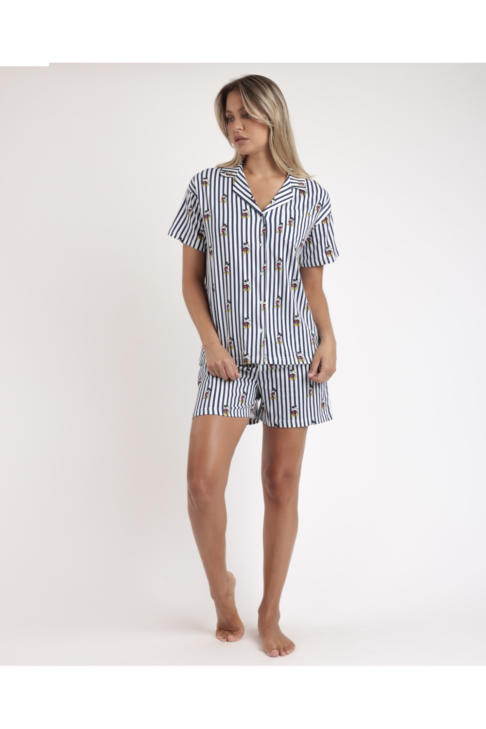 DISNEY Pijama Abierto Manga Corta Mickey Ny Summer para Mujer AZUL