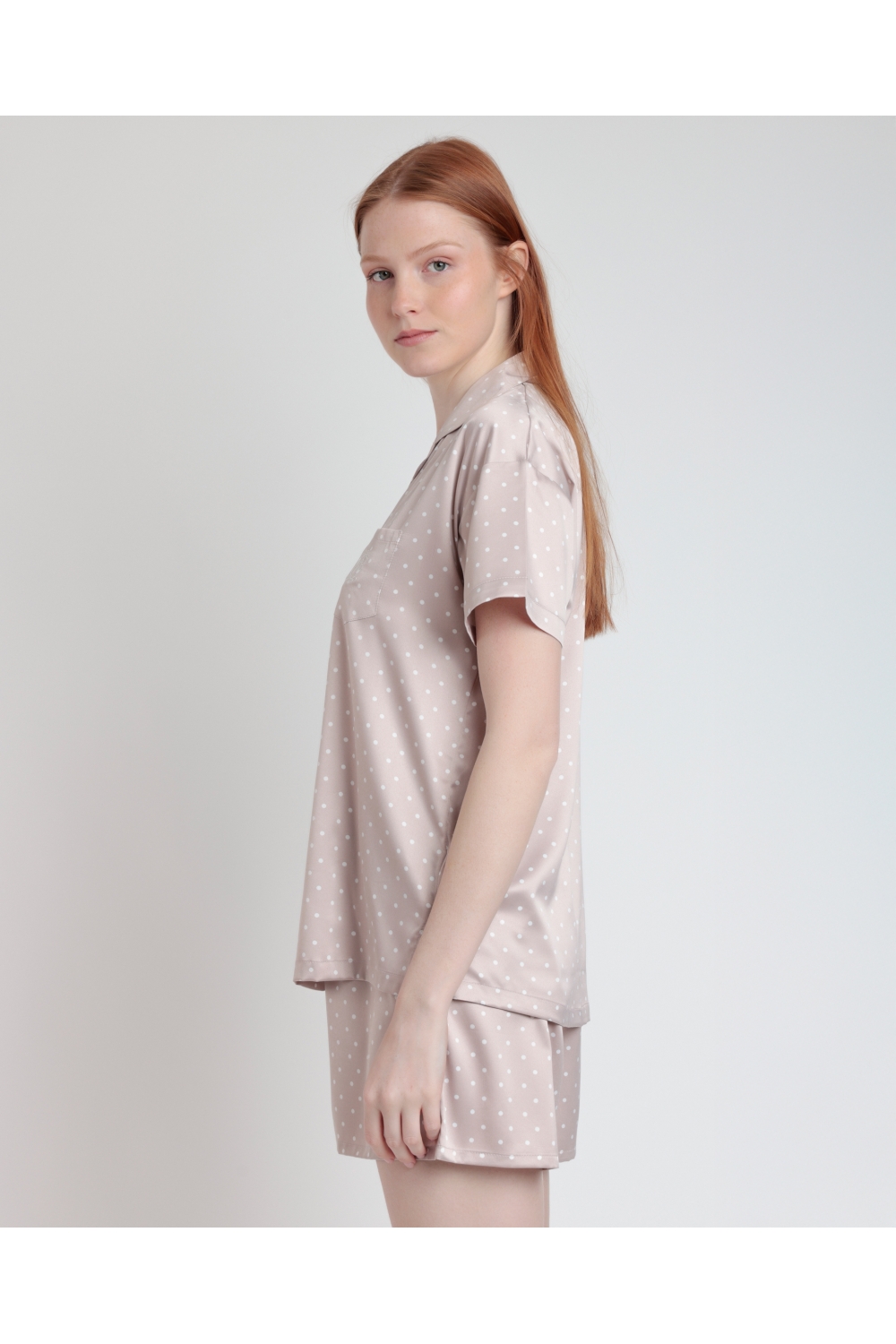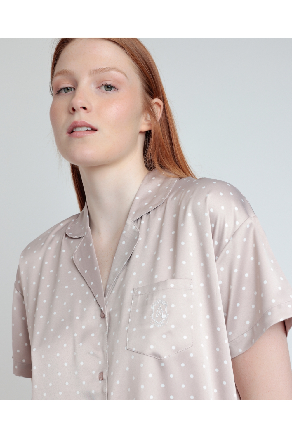 ADMAS CLASSIC Pijama Abierto Manga Corta Dots Lace para Mujer PIEDRA