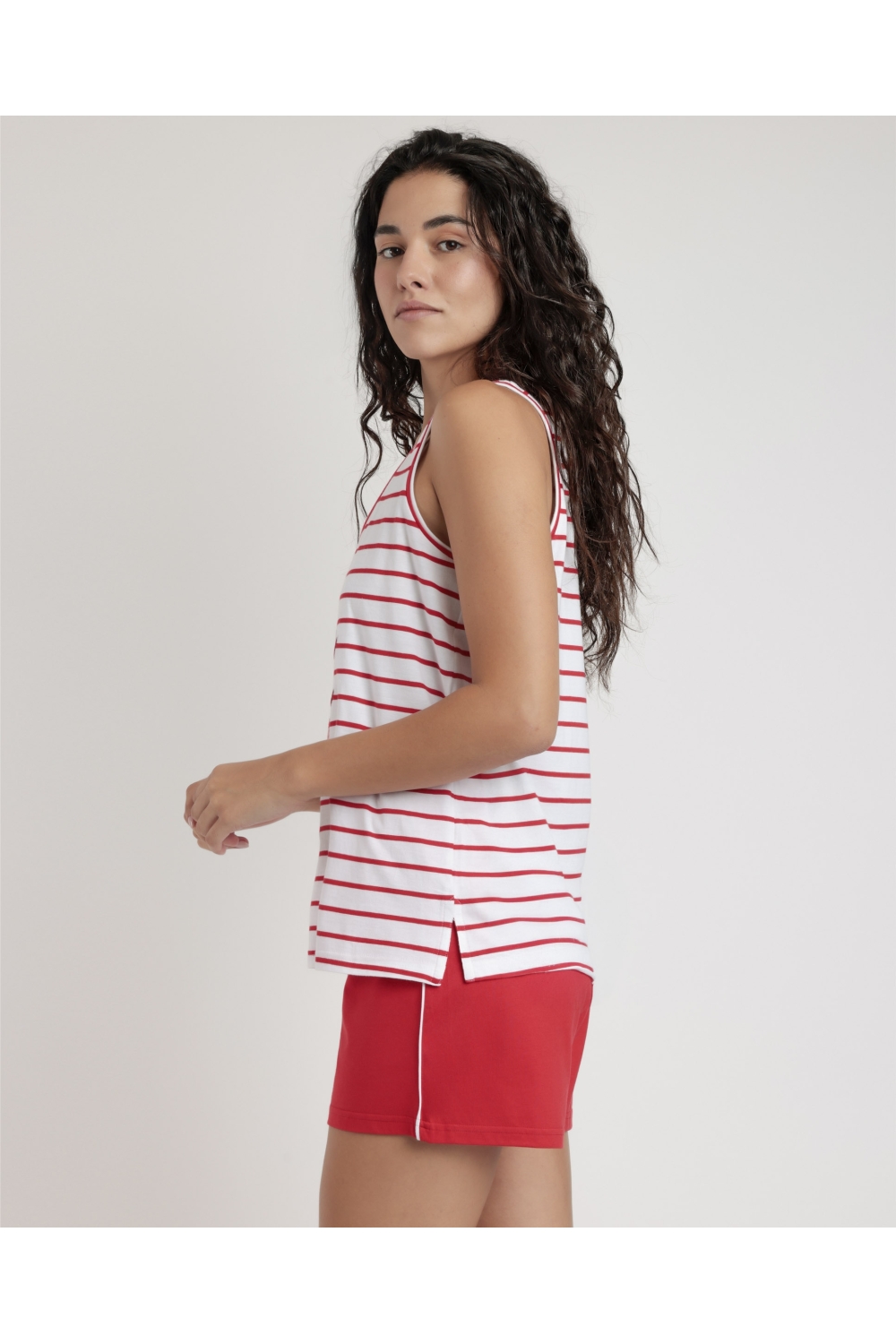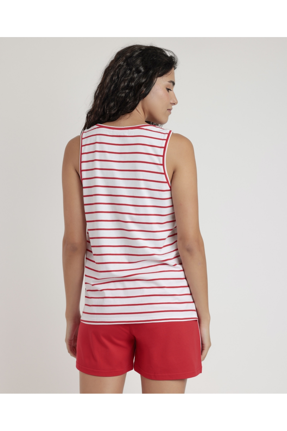 * Pijama de punto de algodón, sin mangas, cuello redondo y pantalón corto.