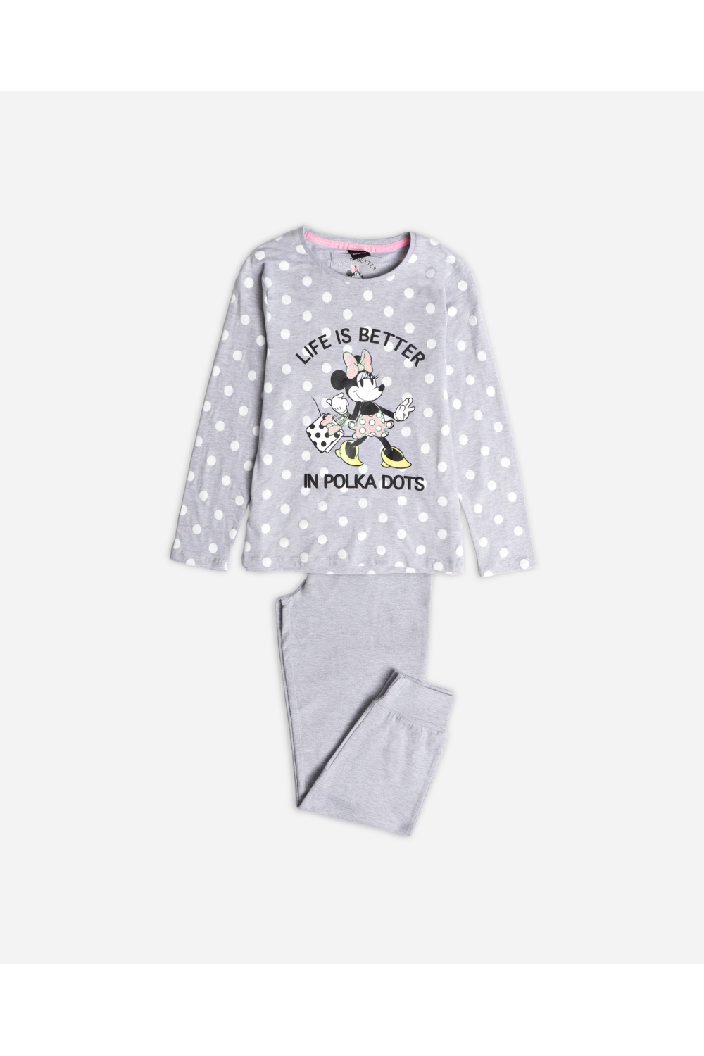 DISNEY Pijama Manga Larga Minnie Dots para Niña GRIS JASPE
