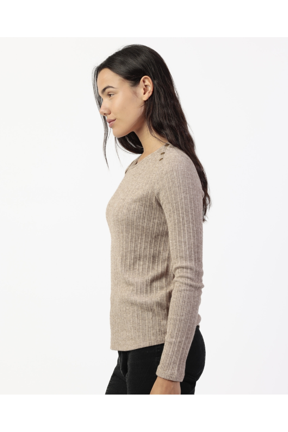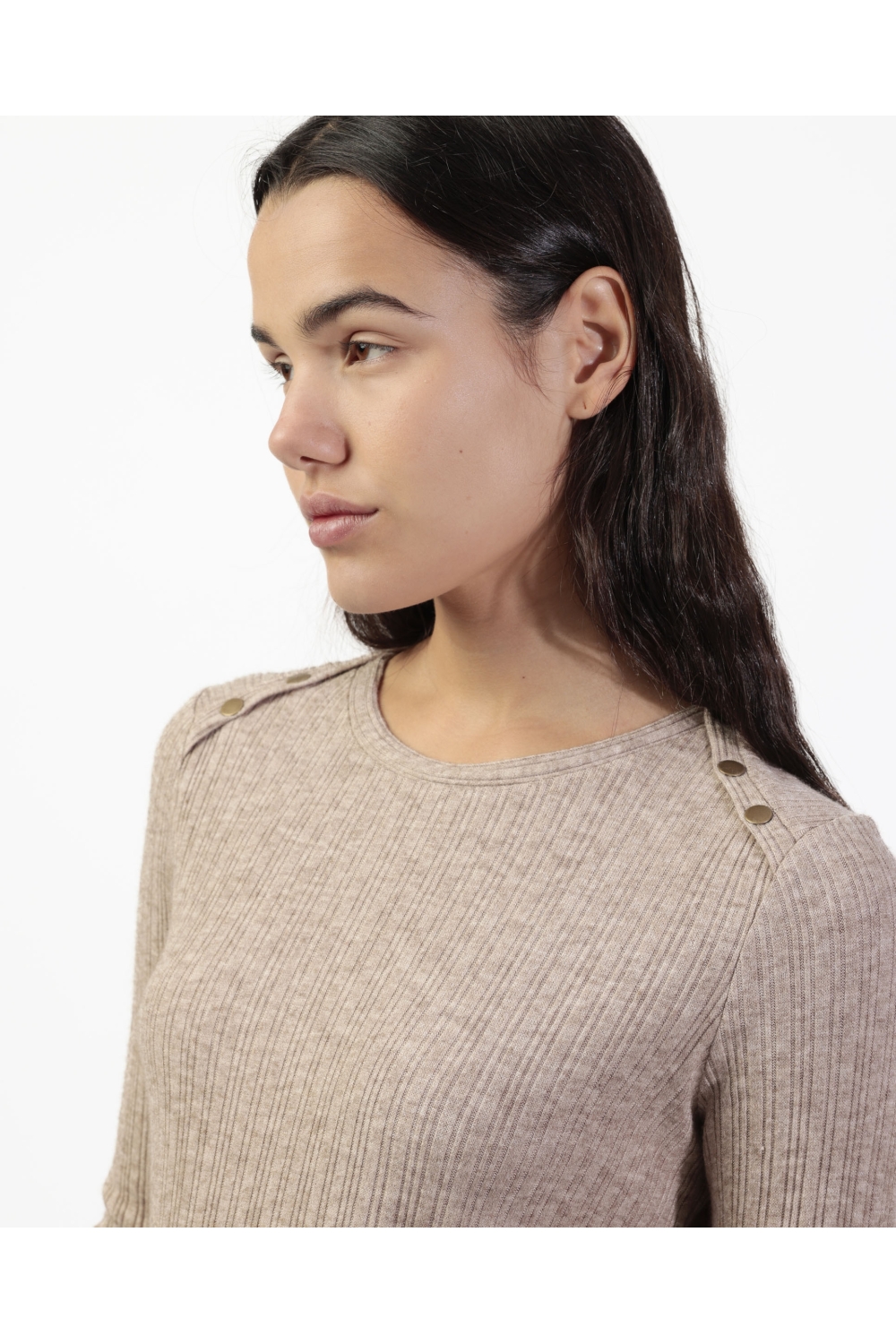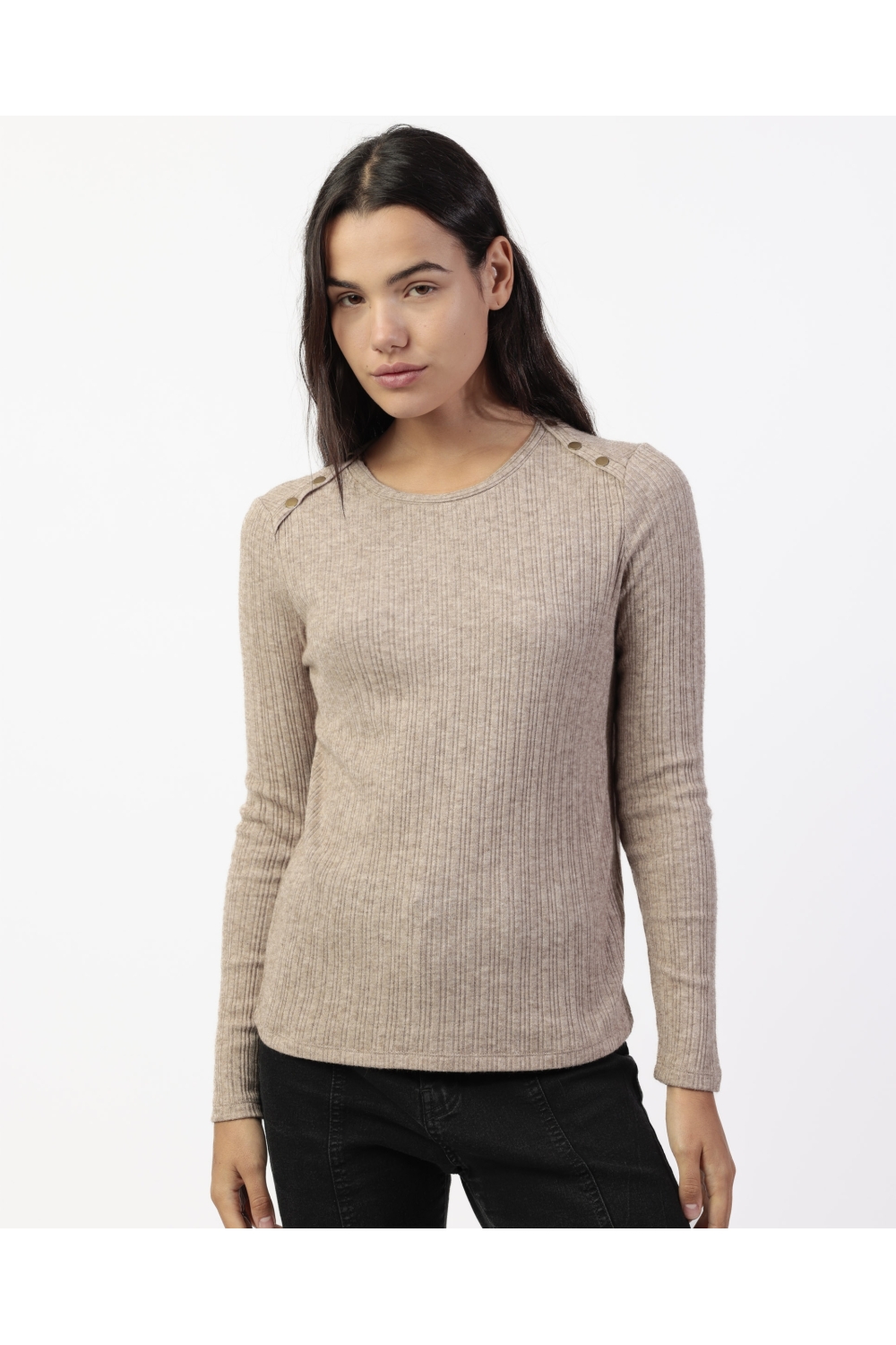 ADMAS Camiseta Manga Larga Botones Melange para Mujer BEIGE JASPE