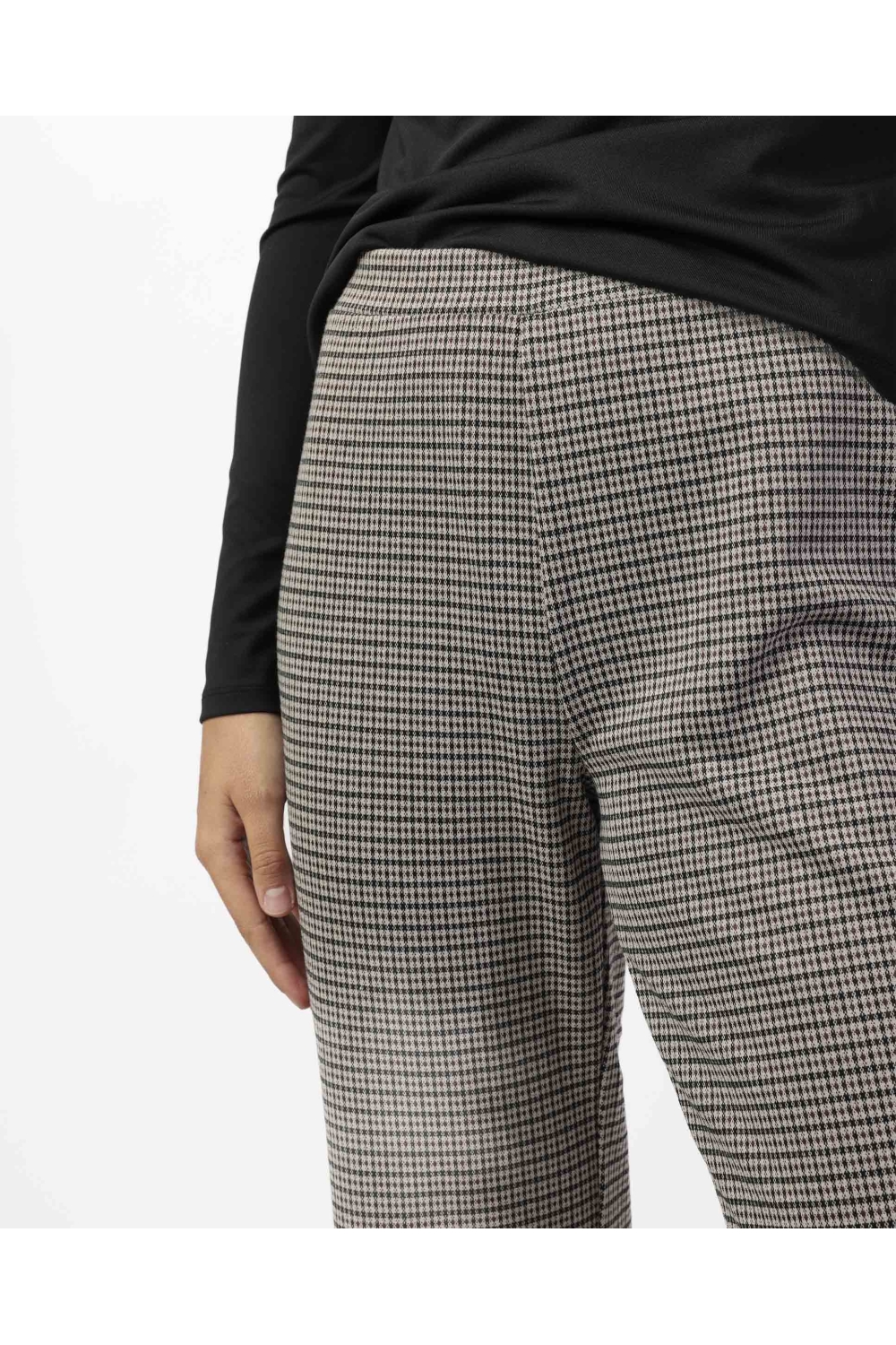 ADMAS Pantalón Elástico Largo Micro Cuadros para Mujer BEIGE