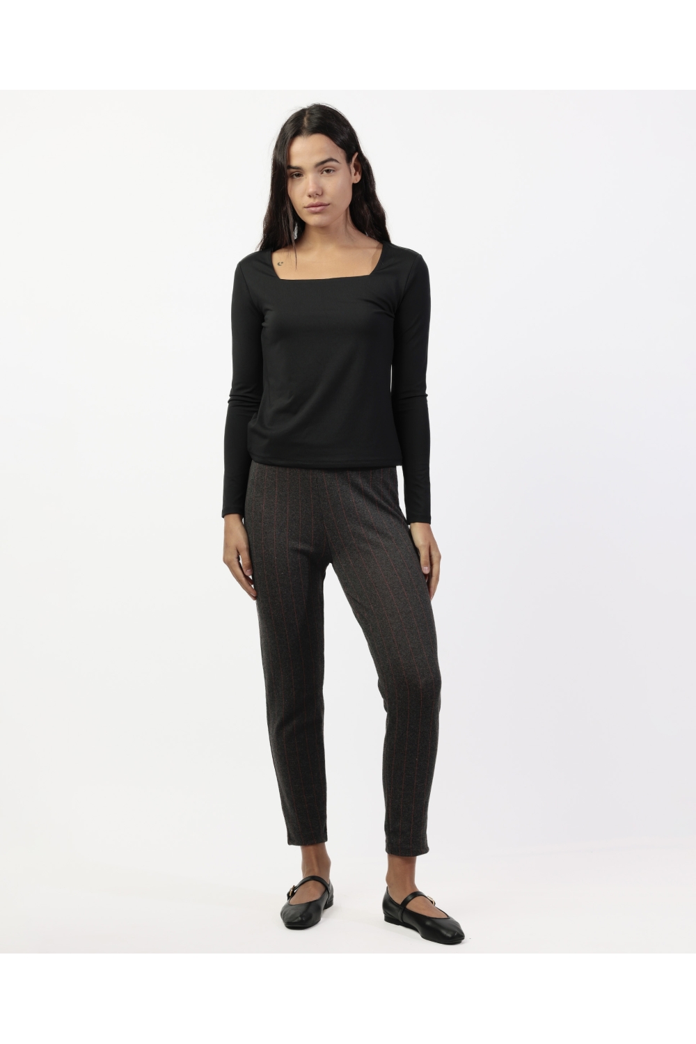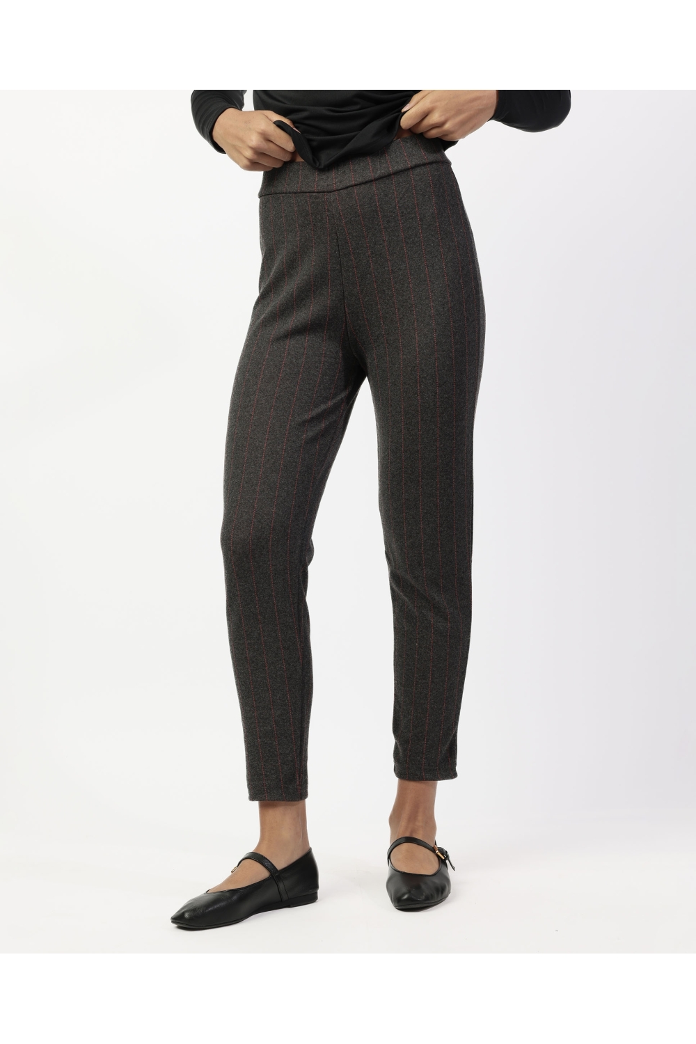 ADMAS Pantalón Elástico Largo Pata de Gallo Granate para Mujer GRIS